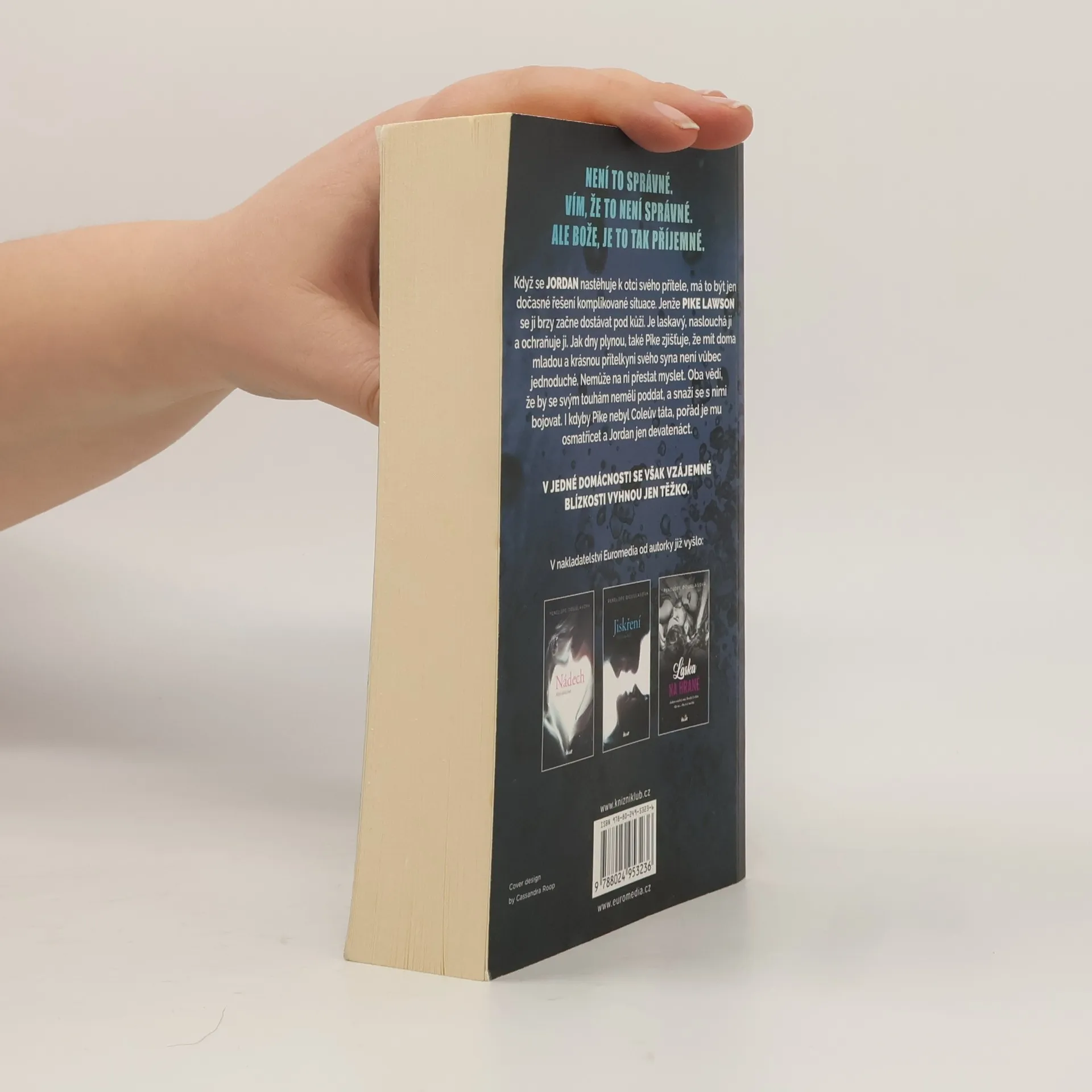 Romance od americké autorky vypráví příběh milé Jordan, která se ve svém životě snaží dělat jen správné věci. Její rodina je jí totiž odstrašujícím příkladem. Je život ale opravdu jenom černobílý? Když se Jordan nastěhuje k otci svého přítele, má to být jen dočasné řešení komplikované situace. Jenže Pike Lawson se jí brzy začne dostávat pod kůži. Oba vědí, že by se svým touhám neměli poddat, a snaží se s nimi bojovat. I kdyby to nebyl Coleův táta, pořád je mu osmatřicet a jí jen devatenáct. V jedné domácnosti se však vzájemné blízkosti vyhnou jen těžko. Nakladatelská anotace.