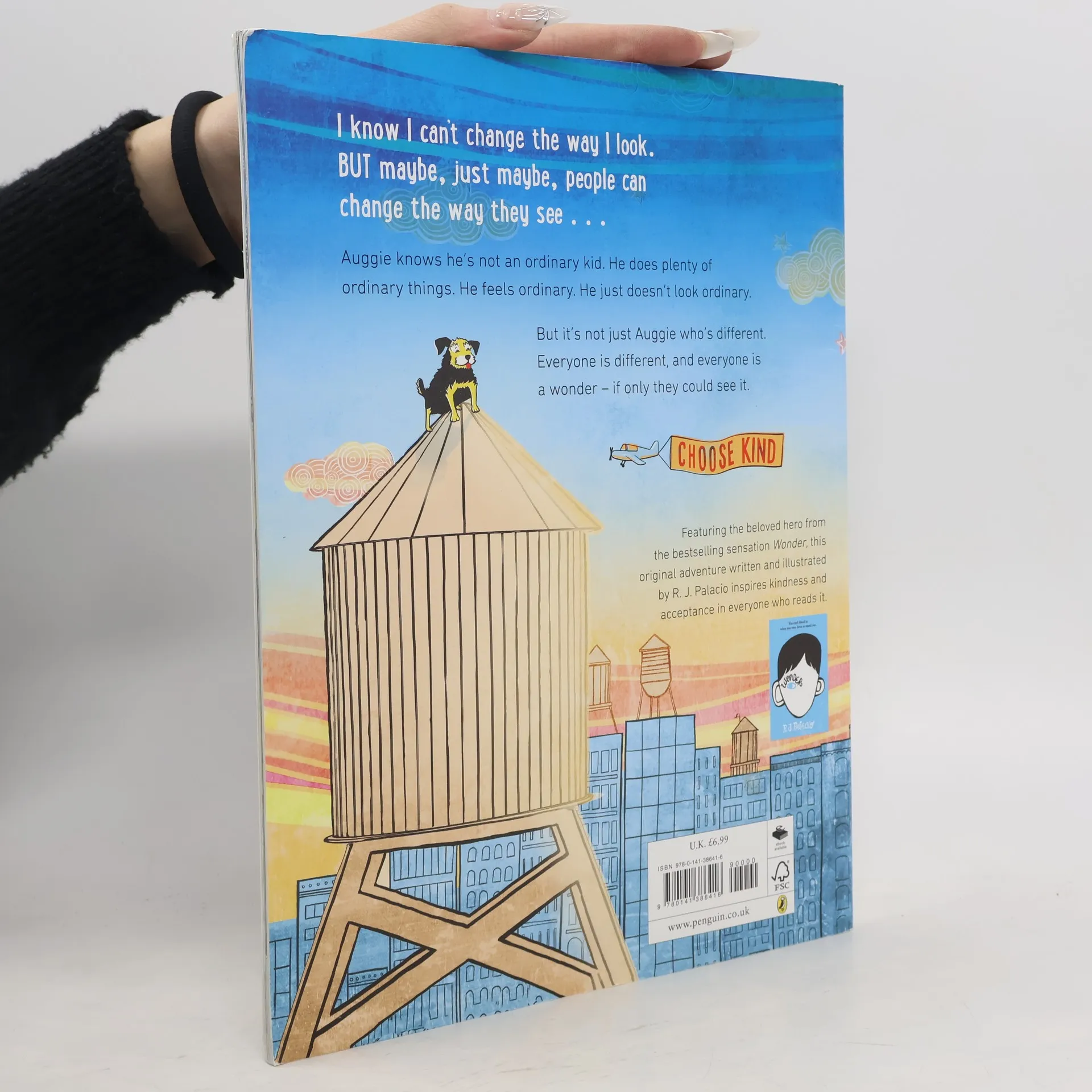 The unforgettable bestseller has inspired a nationwide movement to Choose Kind. Parents and educators can now introduce the importance of kindness to younger readers through this beautiful picture book featuring Auggie and Daisy on an original adventure, crafted by R. J. Palacio. Over 5 million people have embraced the movement, and younger readers can now meet Auggie Pullman, an ordinary boy with an extraordinary face, along with his beloved dog, Daisy. Responding to countless requests, Palacio makes her picture-book debut as both author and illustrator, presenting a powerful narrative paired with striking illustrations. She immerses readers in Auggie's world, where he feels like any other kid but isn't always perceived that way. This story resonates with every child's desire to belong and be seen for who they truly are, making it an ideal resource for families and educators to discuss empathy and kindness with young children. The original book has received numerous accolades, including being a #1 New York Times Bestseller and selections from prestigious lists such as Time Magazine’s 100 Best Young Adult Books and the Washington Post's Best Kids' Books. Critics praise it as a beautiful exploration of friendship, tenacity, and kindness, ensuring Auggie and his story will remain in readers' hearts.