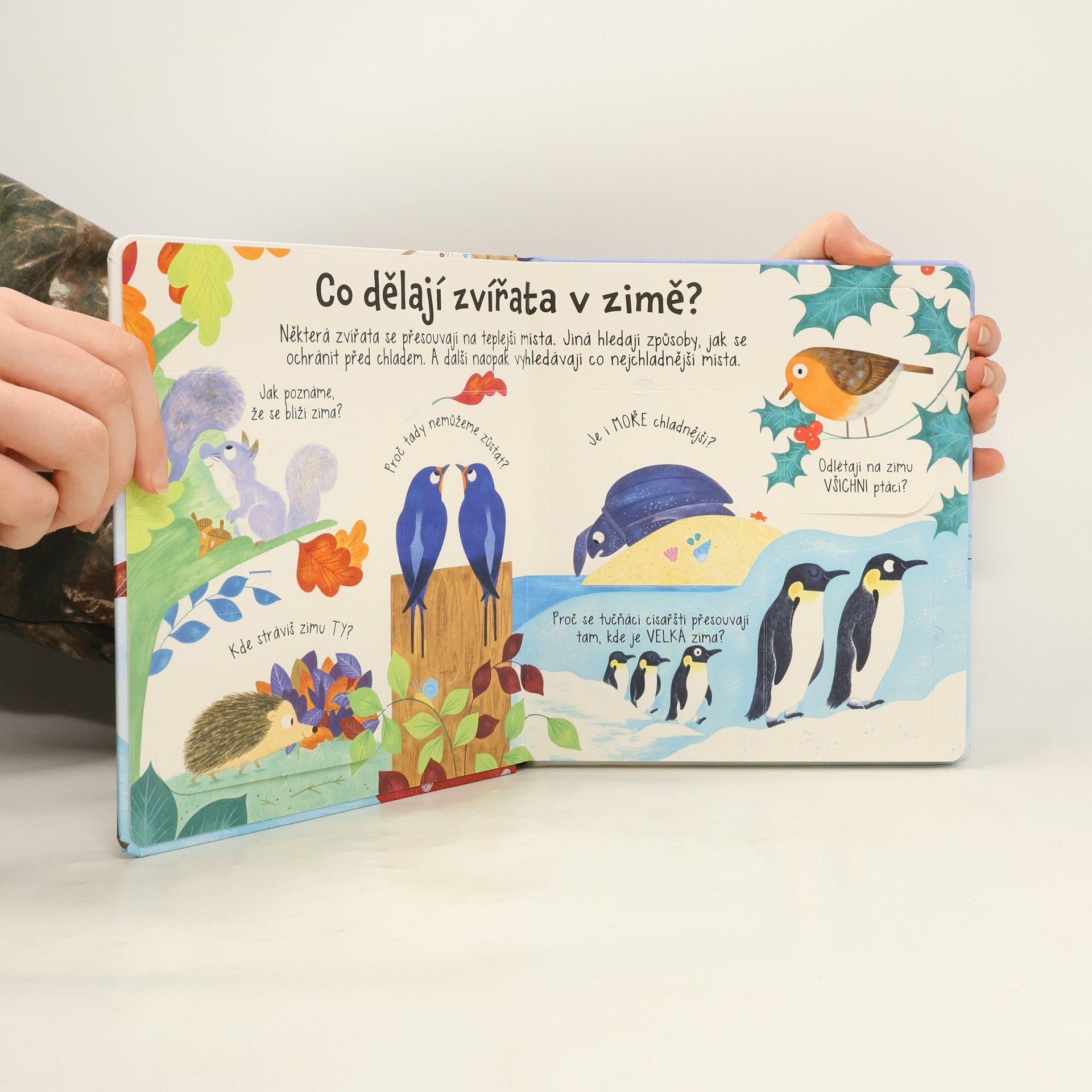 Co dělají zvířata v zimě? Co jedí? Jak se udržují v teple a mohou jim lidé nějak pomoci? To všechno děti zjistí v této krásně ilustrované knížce s okénky.