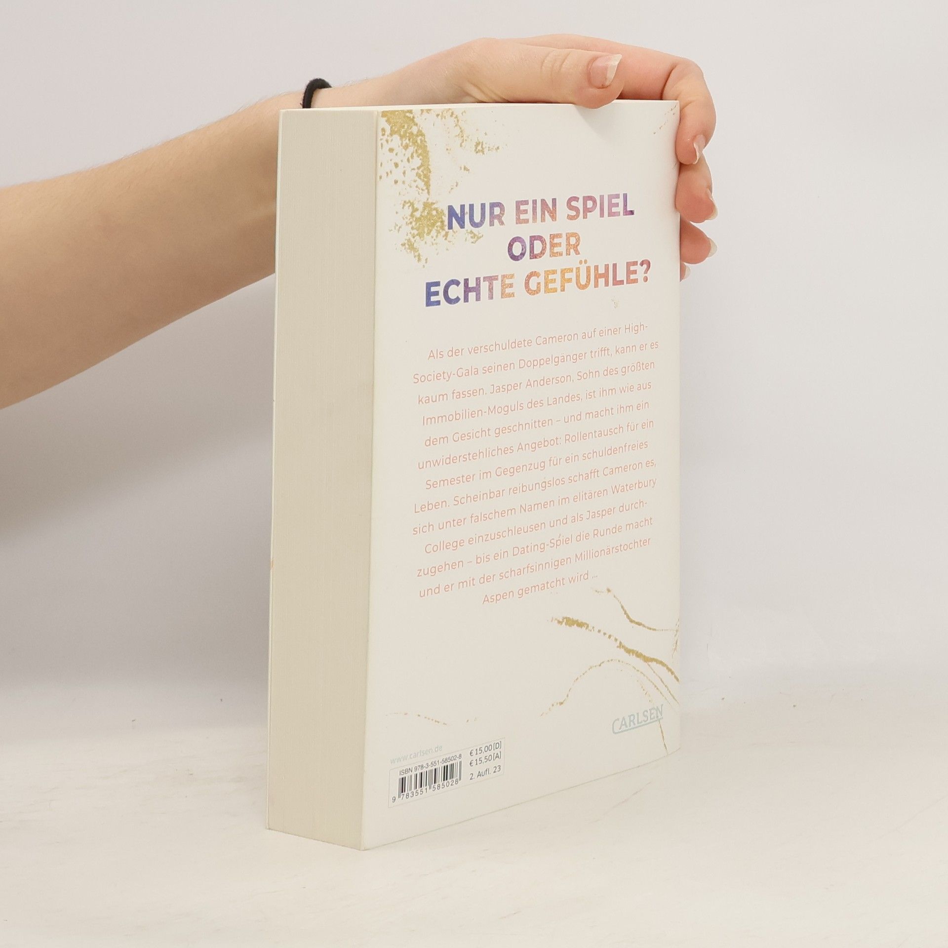 Als der verschuldete Cameron auf einer High-Society-Gala seinen Doppelgänger trifft, kann er es kaum fassen. Jasper Anderson, Sohn des größten Immobilien-Moguls des Landes, ist ihm wie aus dem Gesicht geschnitten – und macht ihm ein unwiderstehliches Angebot: Rollentausch für ein Semester im Gegenzug für ein schuldenfreies Leben. Scheinbar reibungslos schafft Cameron es, sich unter falschem Namen im elitären Waterbury College einzuschleusen und als Jasper durchzugehen – bis ein Dating-Spiel die Runde macht und er mit der scharfsinnigen Millionärstochter Aspen gematcht wird …