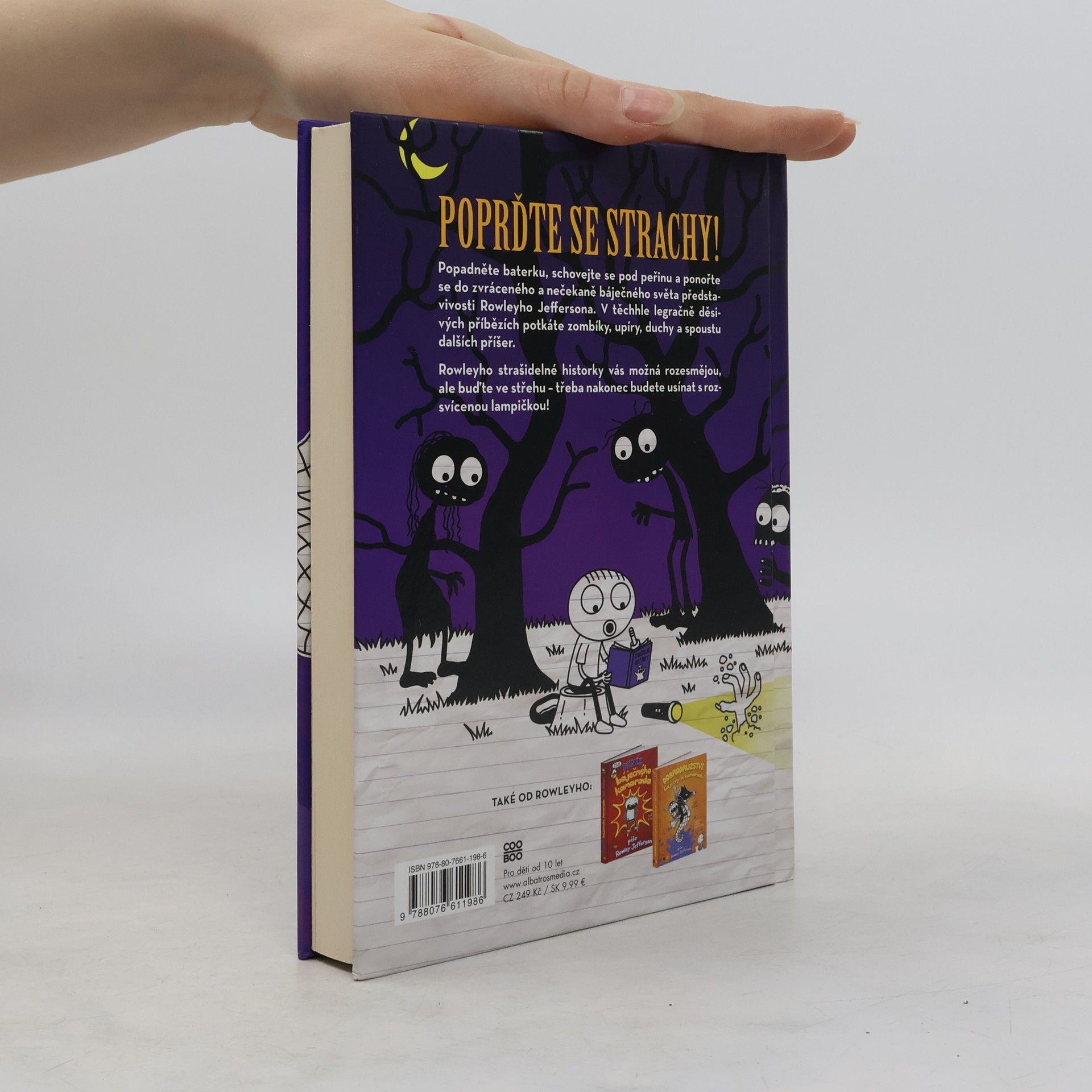 V řadě již třetí díl úspěšné série Deník báječného kamaráda vyprávěný z pohledu Rowleyho Jeffersona. Popadněte baterku, vlezte pod přikrývku a ponořte se do zkrouceného, nečekaně veselého světa fantazie Rowleyho Jeffersona. V těchto komicky děsivých příbězích se setkáte se zombie, upíry, duchy a mnohem více. Rowleyho strašidelné příběhy vás mohou rozesmát, ale pozor, abyste nakonec nemuseli spát s rozsvícenými světly!