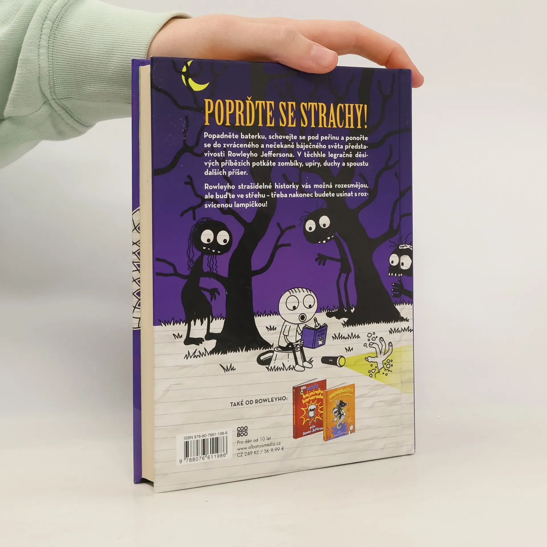 V řadě již třetí díl úspěšné série Deník báječného kamaráda vyprávěný z pohledu Rowleyho Jeffersona. Popadněte baterku, vlezte pod přikrývku a ponořte se do zkrouceného, nečekaně veselého světa fantazie Rowleyho Jeffersona. V těchto komicky děsivých příbězích se setkáte se zombie, upíry, duchy a mnohem více. Rowleyho strašidelné příběhy vás mohou rozesmát, ale pozor, abyste nakonec nemuseli spát s rozsvícenými světly!