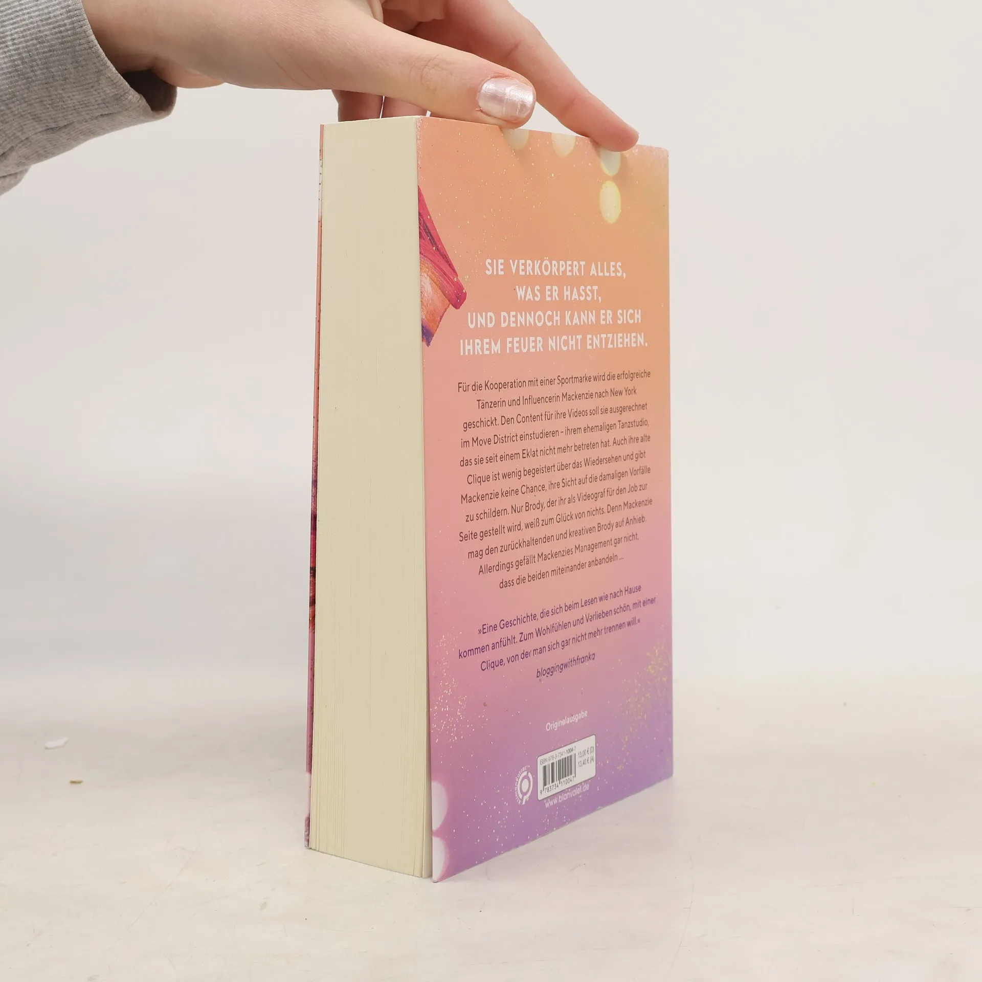 Mackenzie und Brody: Sie verkörpert alles, was er hasst, und dennoch kann er sich ihrem Feuer nicht entziehen. Für die Kooperation mit einer Sportmarke wird die erfolgreiche Tänzerin und Influencerin Mackenzie nach New York geschickt. Den Content für ihre Videos soll sie ausgerechnet im Move District einstudieren – ihrem ehemaligen Tanzstudio, das sie seit einem Eklat nicht mehr betreten hat. Auch ihre alte Clique ist wenig begeistert über das Wiedersehen und gibt Mackenzie keine Chance, ihre Sicht auf die damaligen Vorfälle zu schildern. Nur Brody, der ihr als Videograf für den Job zur Seite gestellt wird, weiß zum Glück von nichts. Denn Mackenzie mag den zurückhaltenden und kreativen Brody auf Anhieb. Allerdings gefällt Mackenzies Management gar nicht, dass die beiden miteinander anbandeln … Mit Playlist im Buch! Die »Move District«-Reihe bei Blanvalet: Band 1: Dance into my World Band 2: Step into my Heart Band 3: Fly into my Soul Alle Bände können auch unabhängig voneinander gelesen werden.