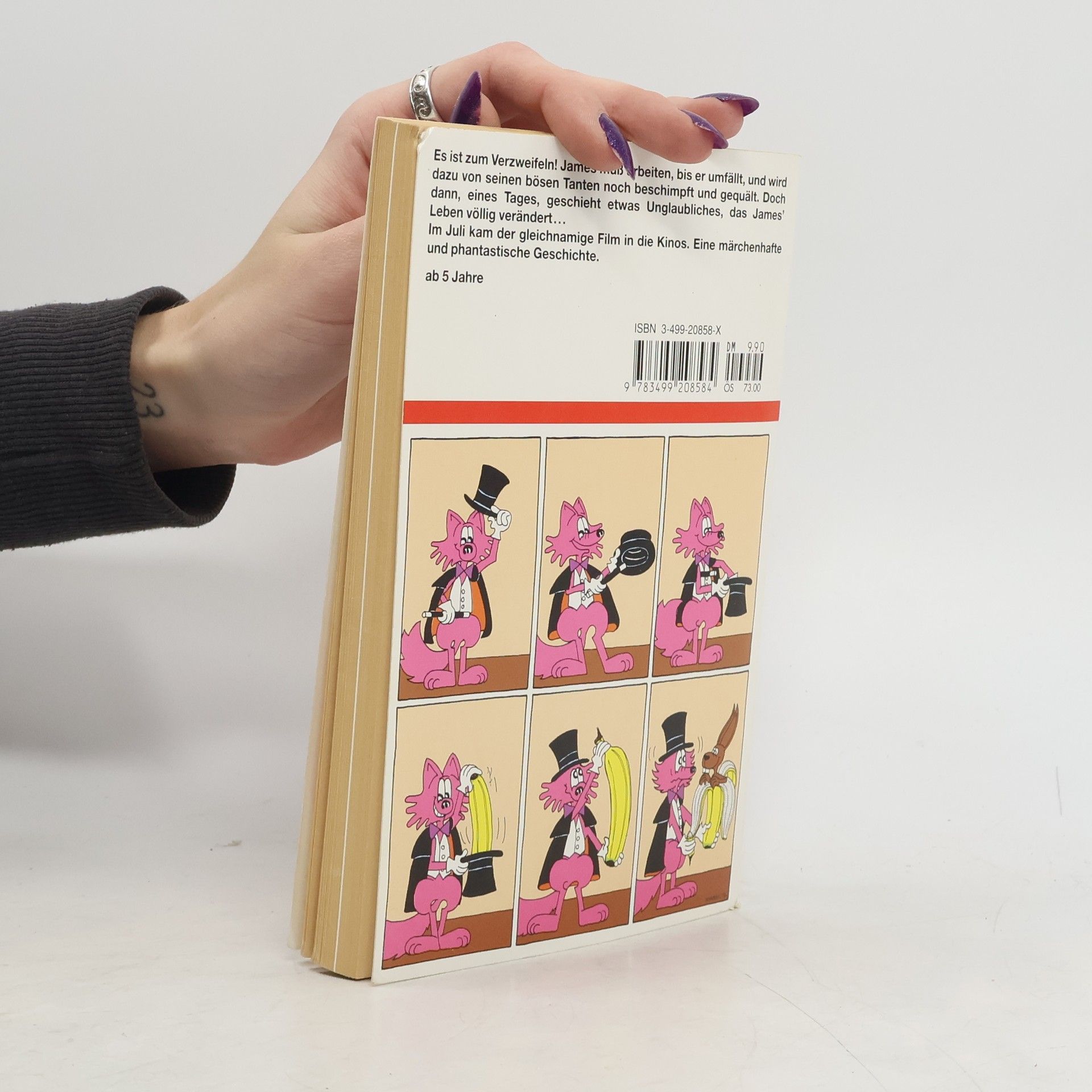 James ist der einsamste und traurigste Junge der Welt! Seit seine Eltern von einem Rhinozeros gefressen wurden, muss er bei den schrecklichen Tanten Schwamm und Zinke leben - was die Hölle ist! Doch eines Tages geschieht das Unglaubliche: James findet im Garten einen magischen Riesenpfirsich, in dem die seltsamsten Geschöpfe wohnen. Ein phantastisches Abenteuer von Roald Dahl - einem der beliebetesten Kinderbuchautoren der Welt!