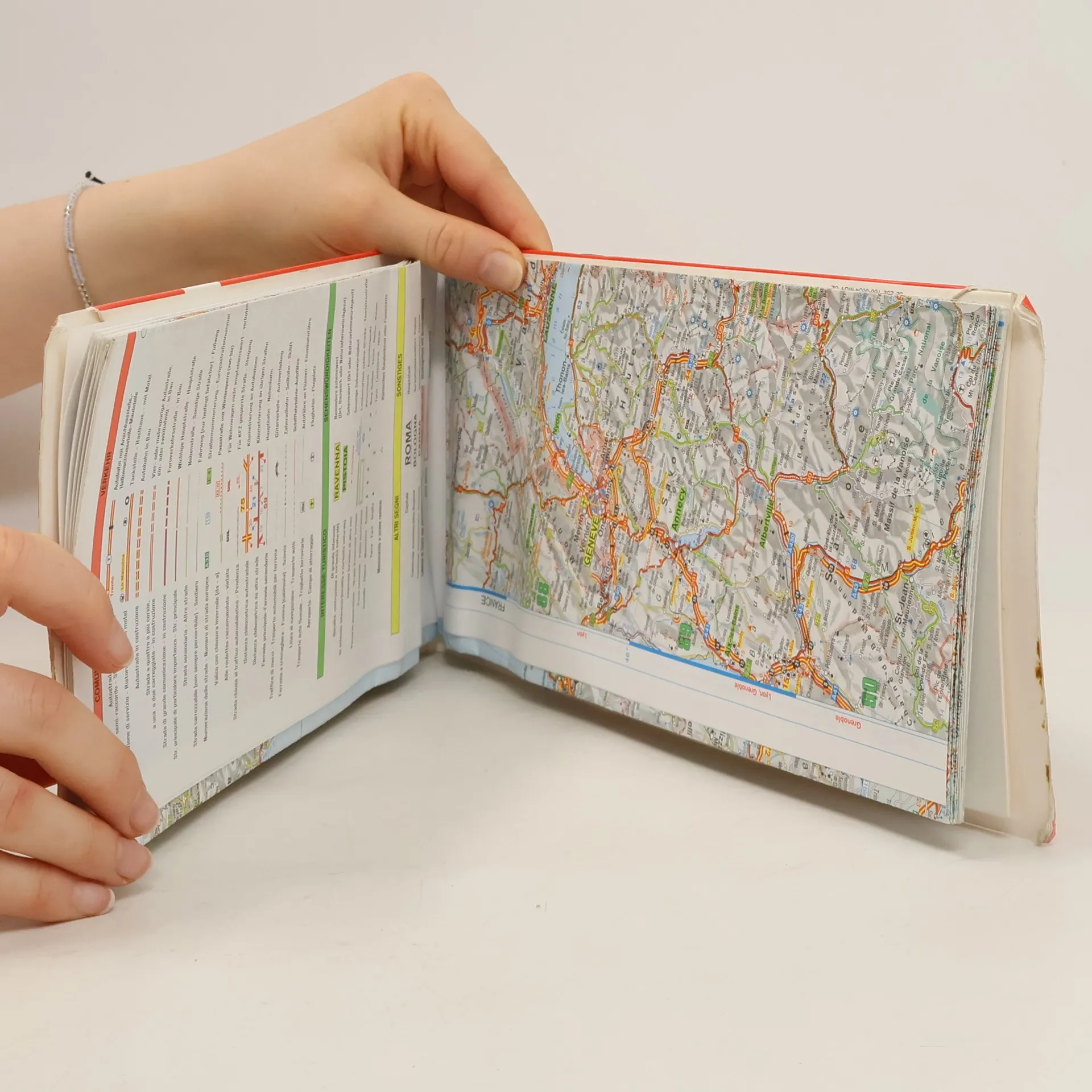 Strassenkte mit tourist. Inform. u. Stadtpl. v. Bologna, Cagliari, Florenz, Mailand, Neapel, Palermo, Rom, Triest, Turin u. Venedig