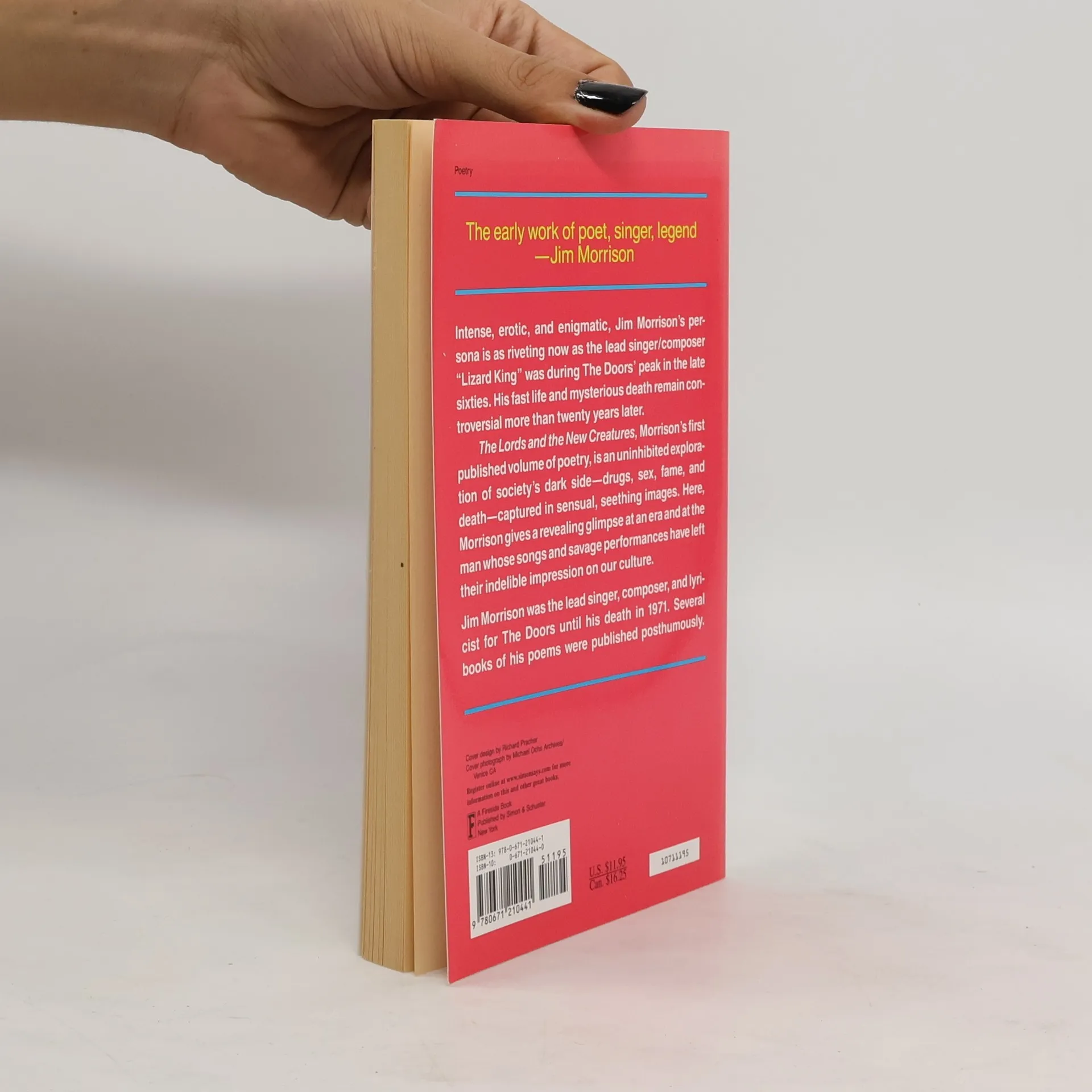 Originally published as two separate volumes in 1969, Jim Morrison’s first published volume of poetry gives a revealing glimpse of an era and the man whose songs and savage performances have left an indelible impression on our culture. Intense, erotic, and enigmatic, Jim Morrison’s persona is as riveting now as the lead singer/composer “Lizard King” was during The Doors’ peak in the late sixties. His fast life and mysterious death remain controversial even to this day. The Lords and the New Creatures, Morrison’s first published volume of poetry, is an uninhibited exploration of society’s dark side—drugs, sex, fame, and death—captured in sensual, seething images. Here, Morrison gives a revealing glimpse at an era and at the man whose songs and savage performances have left their indelible impression on our culture.