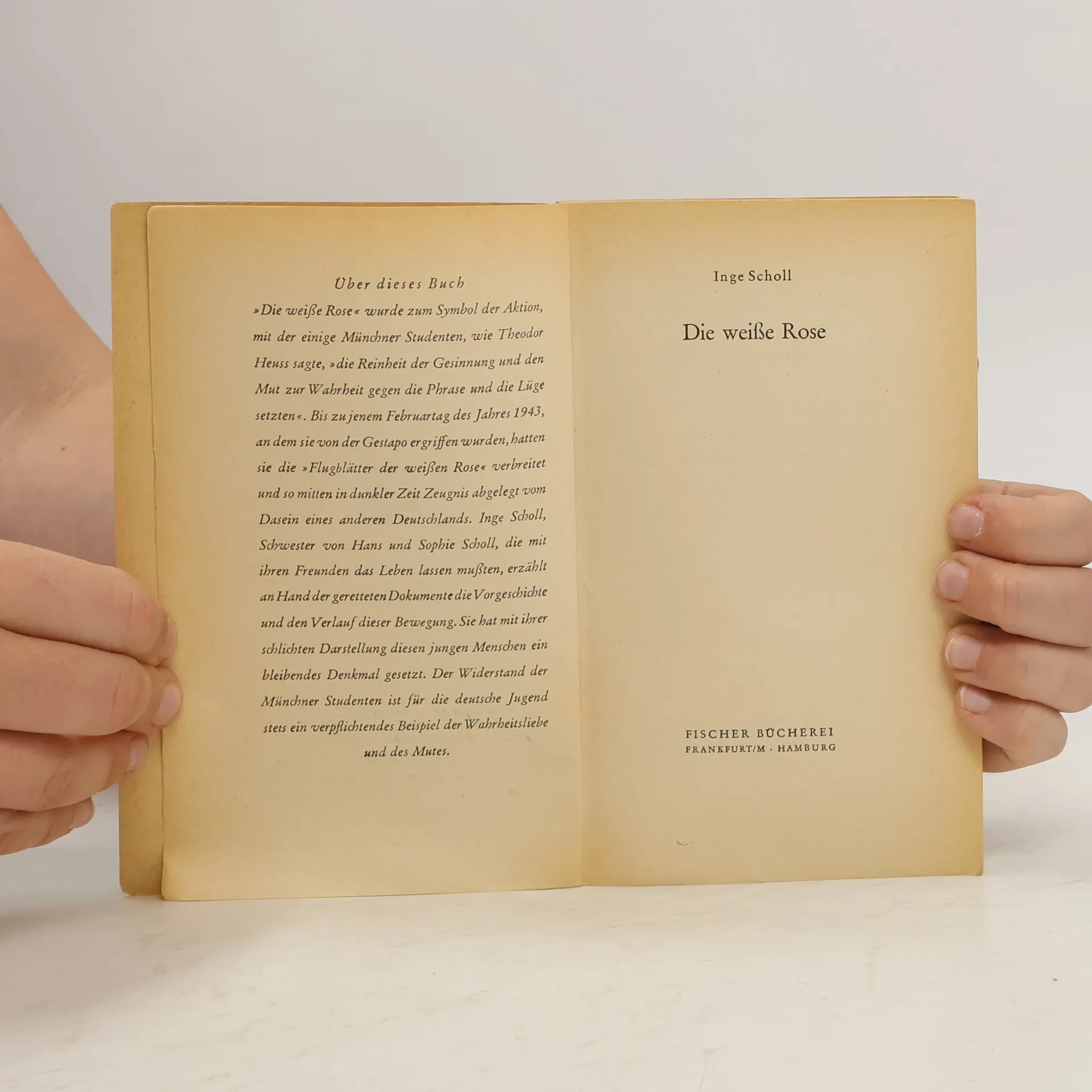 Die 'Weiße Rose' wurde zum Symbol einer Aktion, mit der einige Münchner Studenten zum Widerstand gegen die Diktatur Hitlers aufriefen. Sie bezahlten dafür mit ihrem Leben. Inge Scholl, die Schwester der Geschwister Hans und Sophiel, die unter den Hingerichteten waren, erzählt mit Hilfe von geretteten Dokumenten die Vorgeschichte und den Verlauf der Bewegung