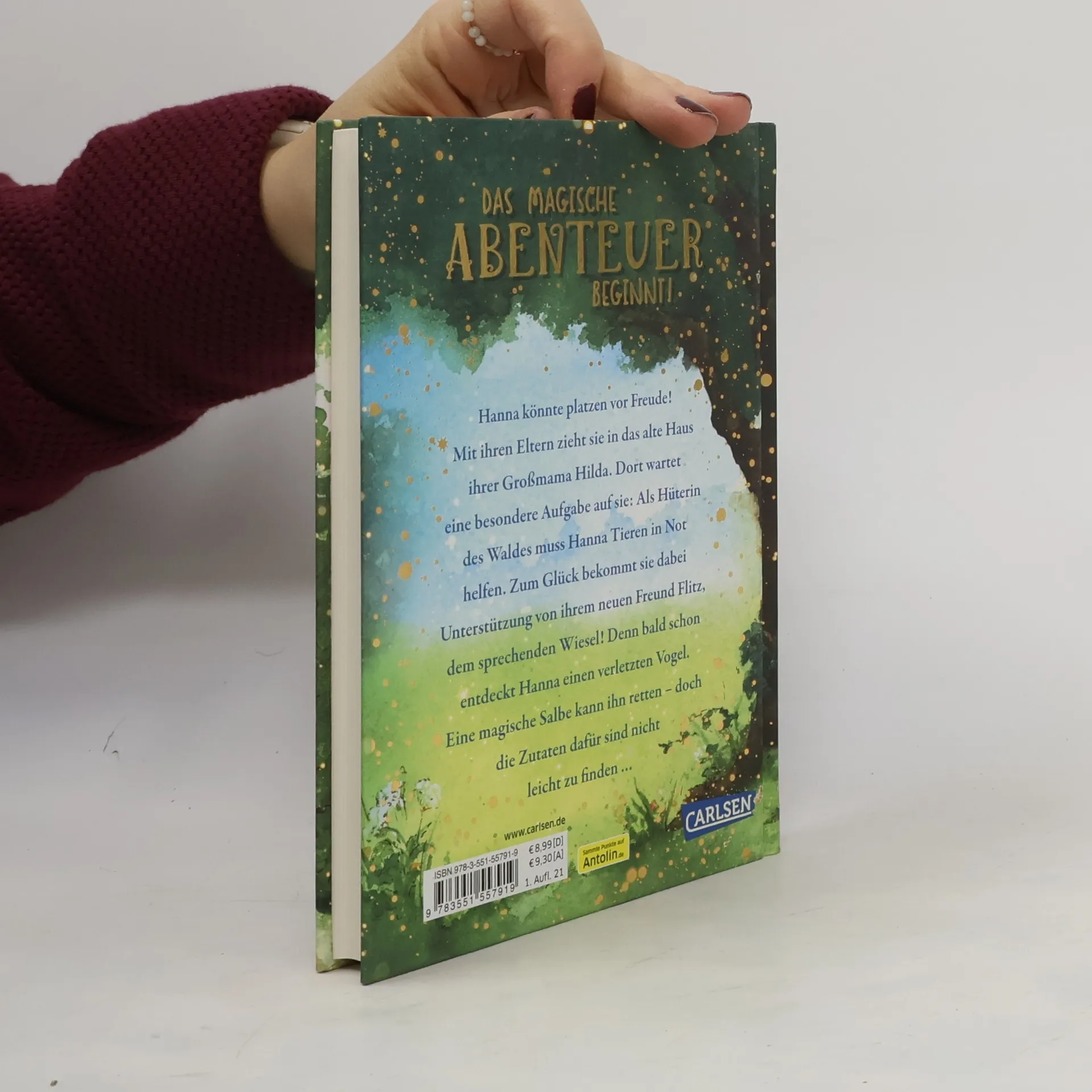 Das magische Abenteuer kann beginnen! Hanna könnte platzen vor Freude! Mit ihren Eltern zieht sie in das alte Haus am Waldrand, das einst Oma Hilda gehörte. Dort wartet eine ganz besondere Aufgabe auf sie: Als Hüterin des Waldes liegt es an Hanna, für die Tiere zu sorgen, wann immer sie Hilfe brauchen. Schon bald entdeckt sie im Gras einen verletzten Vogel. Um ihn wieder gesund zu machen, muss sie eine magische Tinktur zusammenmischen. Doch wo findet sie nur all die Zutaten dafür? Zum Glück bekommt sie Unterstützung von Flitz. Das Wiesel hat nicht nur stets einen frechen Spruch auf den Lippen, sondern erweist sich auch als wahrer Freund. Eine Wohlfühl-Reihe für alle Fans von »Eulenzauber« und »Sternenschweif«! Ausgezeichnet mit der Kieler Lesesprotte 2022. Band 1: Hannas GeheimnisBand 2: Häschen in NotBand 3: Theater mit Familie IgelBand 4: Spuren im Schnee Band 5 erscheint im Frühjahr 2023