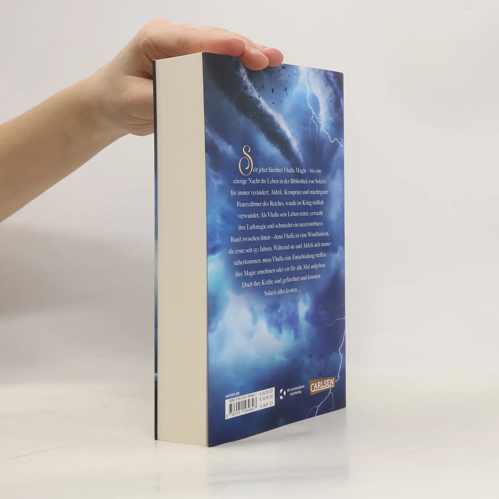 Eine junge Frau entdeckt ihre verloren geglaubte Gabe, während ein Prinz mit der Macht über das Feuer in eine gefährliche Lage gerät. Vhalla führt ein glückliches Leben in ihrer Welt der Bücher, bis eine Nacht alles verändert. Aldrik, der Kronprinz und mächtigste Feuerzähmer, wird im Krieg schwer verletzt. Als Vhalla ihm das Leben rettet, erwacht ihre Magie und verbindet sie untrennbar mit Aldrik – sie ist die erste Windläuferin seit 150 Jahren. Doch ihre Luftmagie ist gefürchtet und darf niemandem, vor allem nicht dem Kaiser, bekannt werden. Während die Kämpfe im Norden toben, entwickelt sich eine tiefere Verbindung zwischen Aldrik und Vhalla. Ihre Liebe birgt jedoch das Risiko, ganz Solaris in Flammen aufgehen zu lassen. Diese magische Romantasy-Saga ist geprägt von Action, Drama und einer bittersüßen Liebe, die das Herz berührt. Leser*innen sind begeistert und schwärmen von der fesselnden Handlung und den emotionalen Wendungen, die sie bis zur letzten Seite in ihren Bann ziehen. Die Reihe umfasst fünf Bände, die die Abenteuer von Vhalla und Aldrik weiterverfolgen.