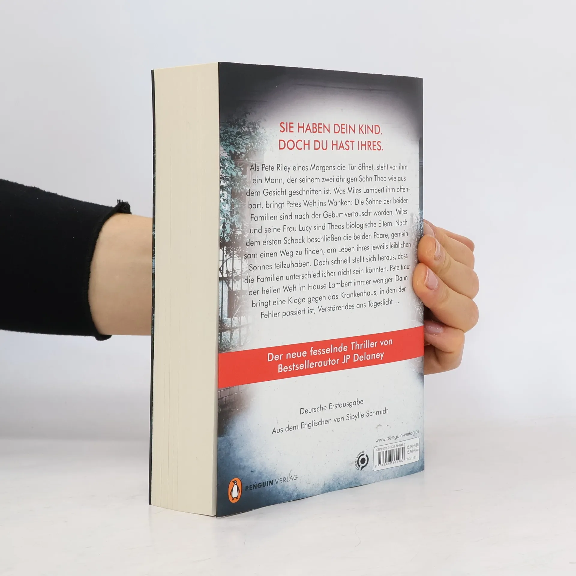 Sie haben dein Kind. Doch du hast ihres. Es ist der Albtraum aller Eltern: Als Pete Riley eines Morgens die Tür öffnet, steht vor ihm ein Mann, der seinem zweijährigen Sohn Theo wie aus dem Gesicht geschnitten ist. Was Miles Lambert ihm offenbart, bringt Petes Welt ins Wanken: Die Söhne der beiden Familien sind nach der Geburt vertauscht worden, Miles und seine Frau sind Theos biologische Eltern. Nach dem ersten Schock beschließen die beiden Paare, die Kinder nicht aus ihren Familien zu reißen. Sie wollen gemeinsam einen Weg finden, am Leben ihres jeweils leiblichen Sohnes teilzuhaben. Doch schnell stellt sich heraus, dass die Familien unterschiedlicher nicht sein könnten. Pete traut der heilen Welt im Hause Lambert immer weniger. Dann bringt eine Klage gegen das Krankenhaus, in dem der Fehler passiert ist, Verstörendes ans Tageslicht …