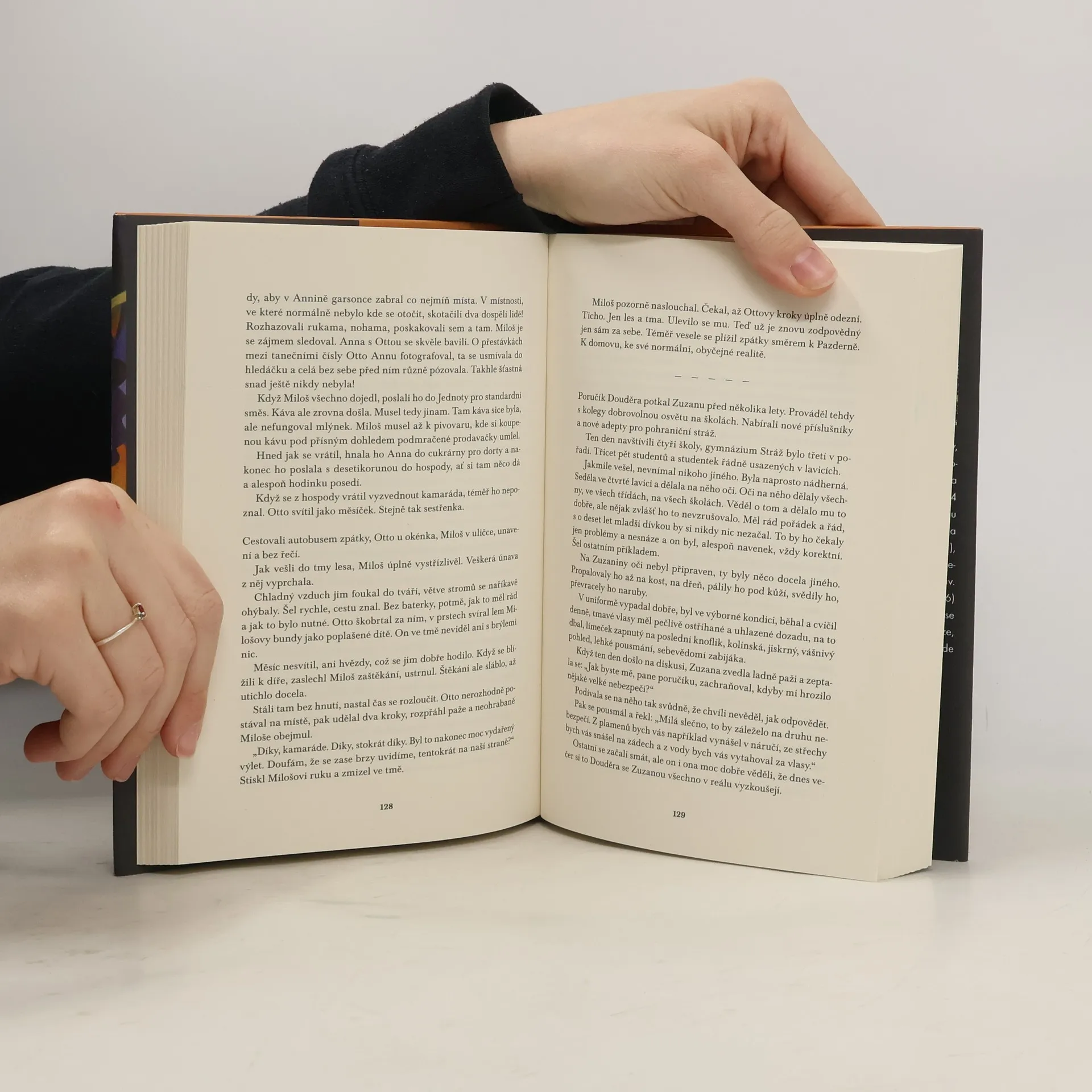 Miloš píše básně. Miloš je zedník. Miloš umí spravit každé hodinky. Miloš žije v šumavské vesnici kousek od hranic s NSR, tedy s Německou spolkovou republikou – a jsou 80. léta 20. století. Každý se snaží protloukat, jak se dá, většinou pod heslem „kdo nekrade, okrádá rodinu“. Miloš je ovšem jiný než většina jeho sousedů a kamarádů, vyčnívá nad panoptikum chlapíků, kteří večer co večer v hospodě cucají své pivo a opakují stále stejné fórky. Miloš je dobrák, a kdyby nebyl i kus mužského, posmívali by se mu do očí. A pak jedné bouřlivé noci v lese u domu zvaného Pazderna uklouzne po blátě a sjede jako Alenka králičí norou do jiného světa. Není ale ani v kraji divů, ani za zrcadlem, nýbrž za čárou. \nDaniela Šafránková rozvíjí mírně bizarní příběh z dob, kdy naše obýváky zdobily plechovky od coca-coly a okresní estébáci viděli ideovou diverzi i ve fialové krávě.