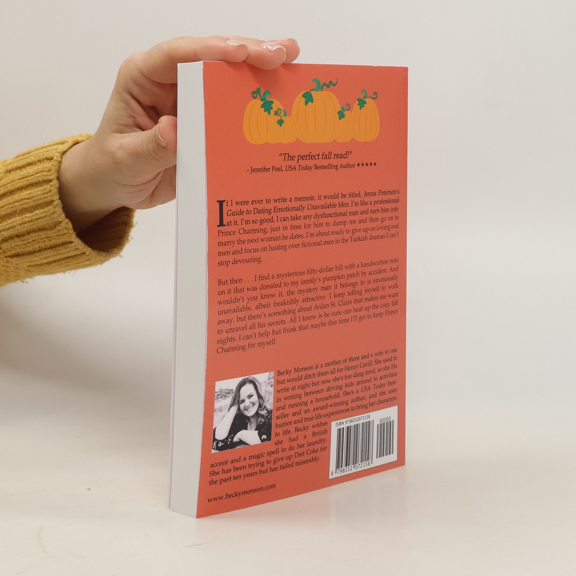 If I were ever to write a memoir, it would be titled, Jenna Peterson's Guide to Dating Emotionally Unavailable Men. I'm like a professional at it. I'm so good, I can take any dysfunctional man and turn him into Prince Charming, just in time for him to dump me and then go on to marry the next woman he dates. I'm about ready to give up on loving real men and focus on lusting over fictional men in the Turkish dramas I can't stop devouring. But then . . . I find a mysterious fifty-dollar bill with a handwritten note on it that was donated to my family's pumpkin patch by accident. And wouldn't you know it, the mystery man it belongs to is emotionally unavailable, albeit freakishly attractive. I keep telling myself to walk away, but there's something about Aidan St. Claire that makes me want to unravel all his secrets. All I know is he sure can heat up the cozy fall nights. I can't help but think that maybe this time I'll get to keep Prince Charming for myself. Grab your pumpkin spice latte and cozy up with the newest romantic comedy from USA Today bestselling author Becky Monson!