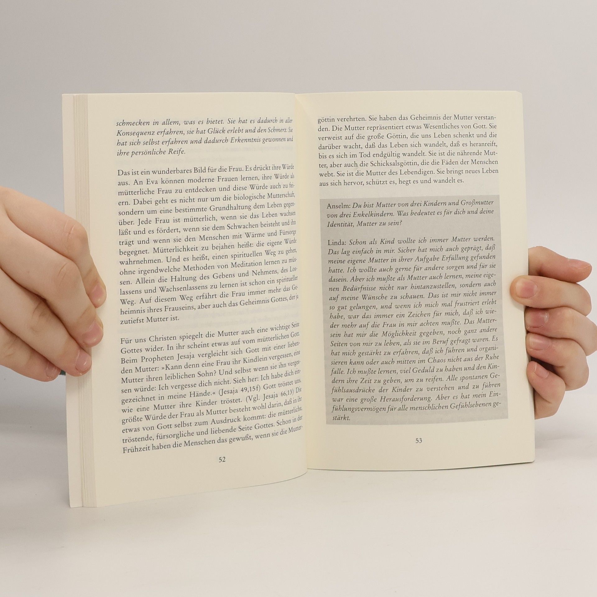 Neue Lust am Leben Facetten der Weiblichkeit, die in jeder Frau stecken, stellen Linda Jarosch und Anselm Grün anhand von 14 biblischen Archetypen dar: darunter Eva (die Mutter), Sara (die Lachende), Tamar (die wilde Frau), Mirjam (die Prophetin), Esther (die Königin), Maria Magdalena (die Liebende). Gemeinsam erörtern sie, wie Leidenschaft und Liebe, Wildheit und Königinnentum, Mütterlichkeit und Priestertum, Weisheit, Gerechtigkeitssinn sowie Kampfgeist und Milde im Leben heutiger Frauen aussehen können. Sie ermutigen die Leserinnen aber auch, diese Eigenschaften zuzulassen und zu leben.