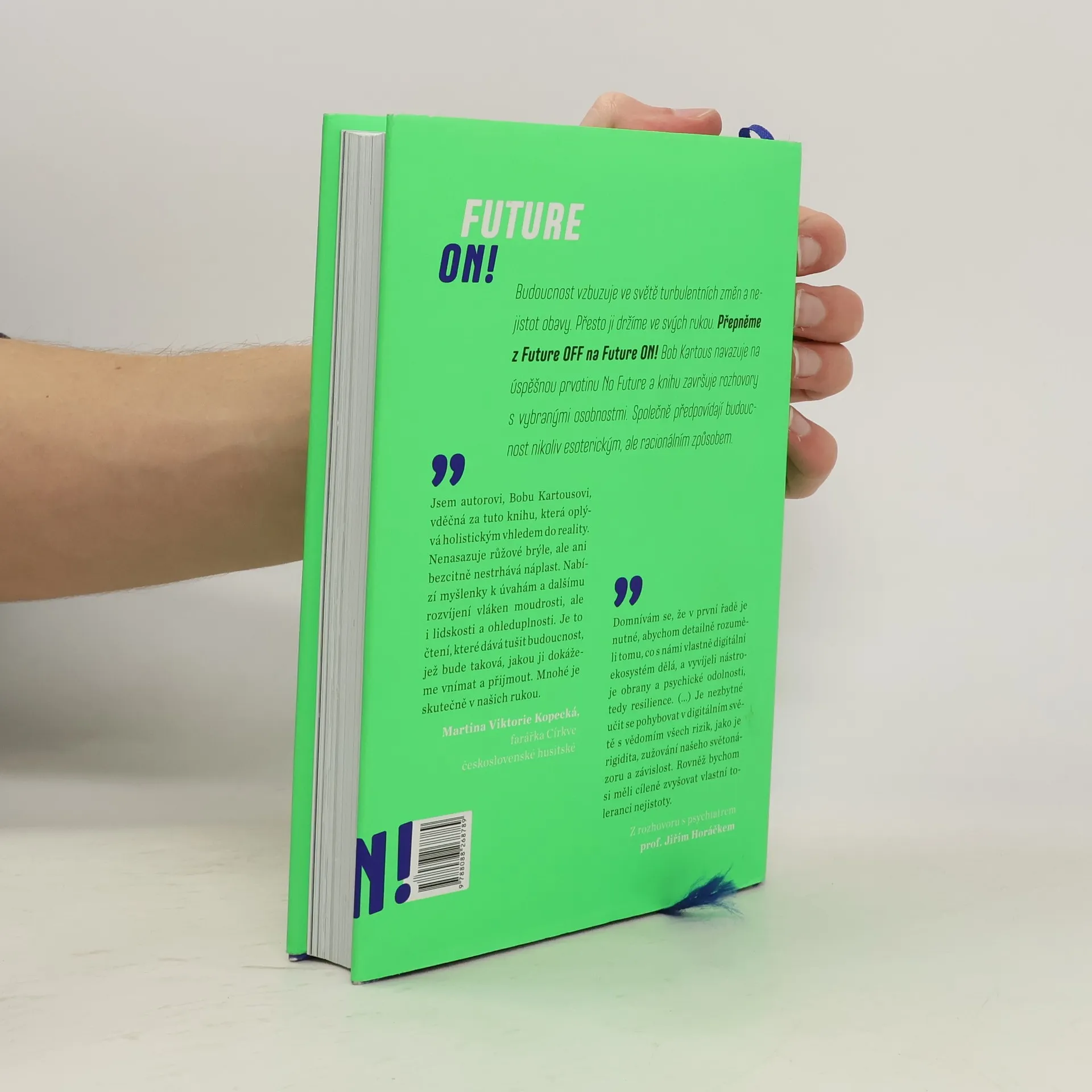 Budoucnost vzbuzuje obavy v turbulentním světě změn a nejistot, ale můžeme ji ovlivnit. Bob Kartous navazuje na svou předchozí knihu a prostřednictvím rozhovorů s vybranými osobnostmi předpovídá budoucnost racionálně, nikoli esotericky. Mnoho lidí touží znát svou budoucnost, což je důvodem, proč esoterika v 21. století, i v době pokročilého vědeckého poznání, zažívá rozmach. Tato doba je nejen technologická, ale také plná nejistoty, což činí budoucnost mlhavou a obtížně snesitelnou. Lidé se s tím vyrovnávají různými způsoby, buď se snaží uniknout, nebo čelit realitě. V důsledku rostoucí úzkosti mnozí vnímají svůj život jako „únikovou hru“, což je varovné. Technologický pokrok se žene vpřed, zatímco lidská adaptace se pomalu přizpůsobuje. Tato kniha analyzuje změny evolučních podmínek v digitálním světě a nabízí způsoby, jak uchopit vlastní budoucnost, abychom se jí nemuseli bát. Cílem je, aby naše děti mohly do budoucnosti vstupovat bez strachu. V závěru knihy se objevují rozhovory s osobnostmi jako Jiří Horáček, Anna Šabatová a další, které obohacují diskusi o budoucnosti. Předmluvu napsala Martina Viktorie Kopecká.