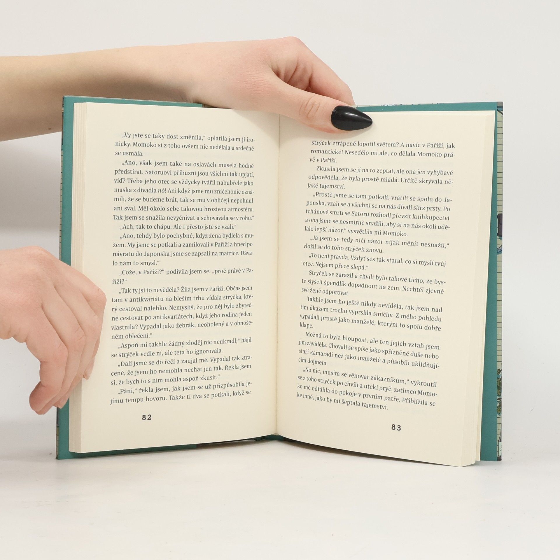Hlavní hrdince Takako její přítel najednou oznámí, že chystá svatbu s jinou ženou. Zlomená Takako se doma trápí a nevydrží v práci neustále potkávat bývalého přítele a jeho snoubenku, tak dá výpověď. Svůj smutek řeší spánkem až do dne, kdy obdrží telefonát od strýčka Satorua. Neviděla se s ním od dětství a on jí teď nabízí, aby mu pomáhala s provozem knihkupectví Morisaki. Takako odjíždí do Tokijské čtvrti plné knihkupectví a antikvariátů, potkává nové přátele a zjišťuje, že knihy nejsou tak úplně k zahození... Strýček Satoru už pět let neslyšel o své manželce Momoko, když se tato jednoho dne zjeví před jeho knihkupectvím. Zdá se, že je vše opět v pořádku, ale Takako musí do jejich vztahu zasáhnout, aby zjistila, proč vlastně tehdy Momoko zmizela. A hlavně – proč se zrovna teď vrátila?