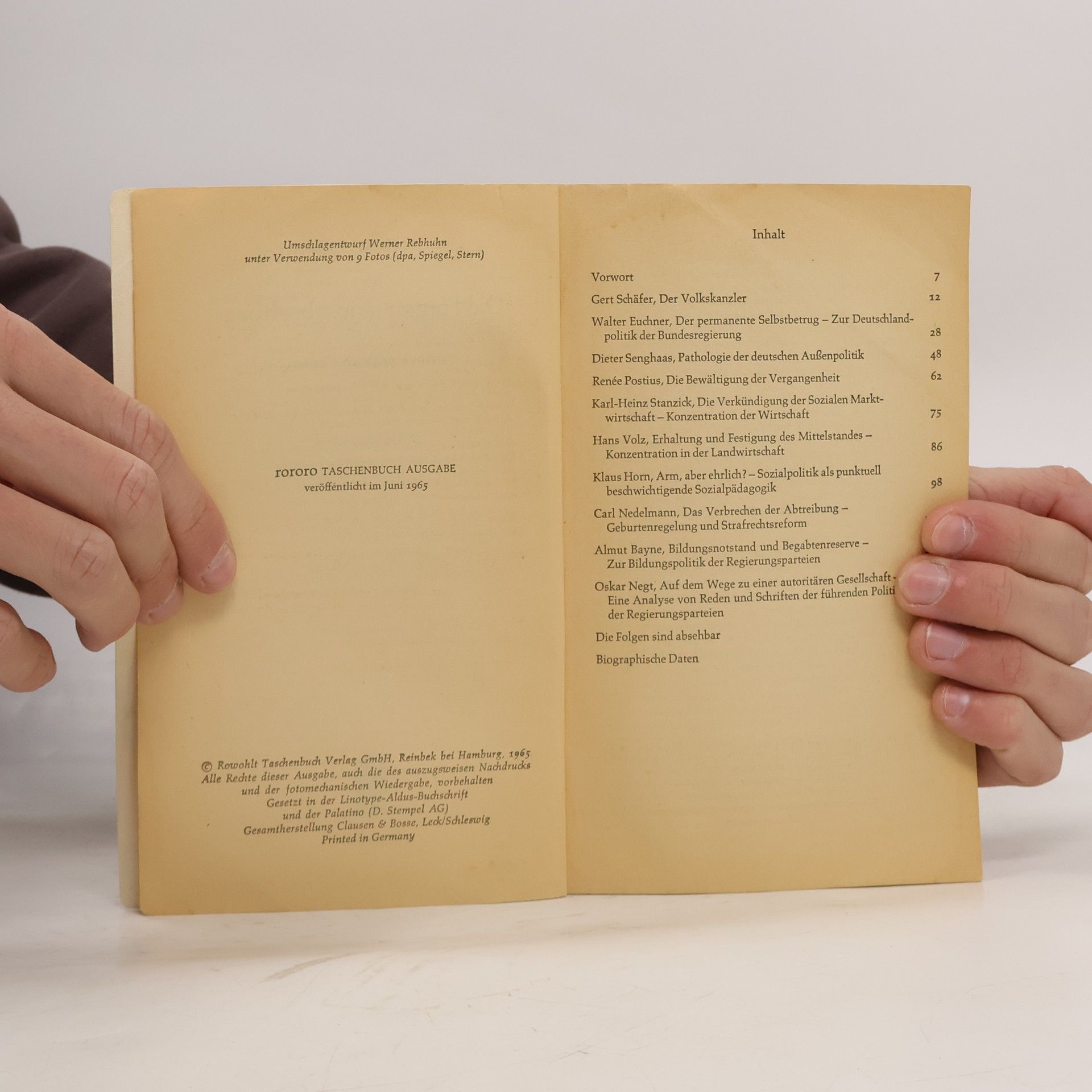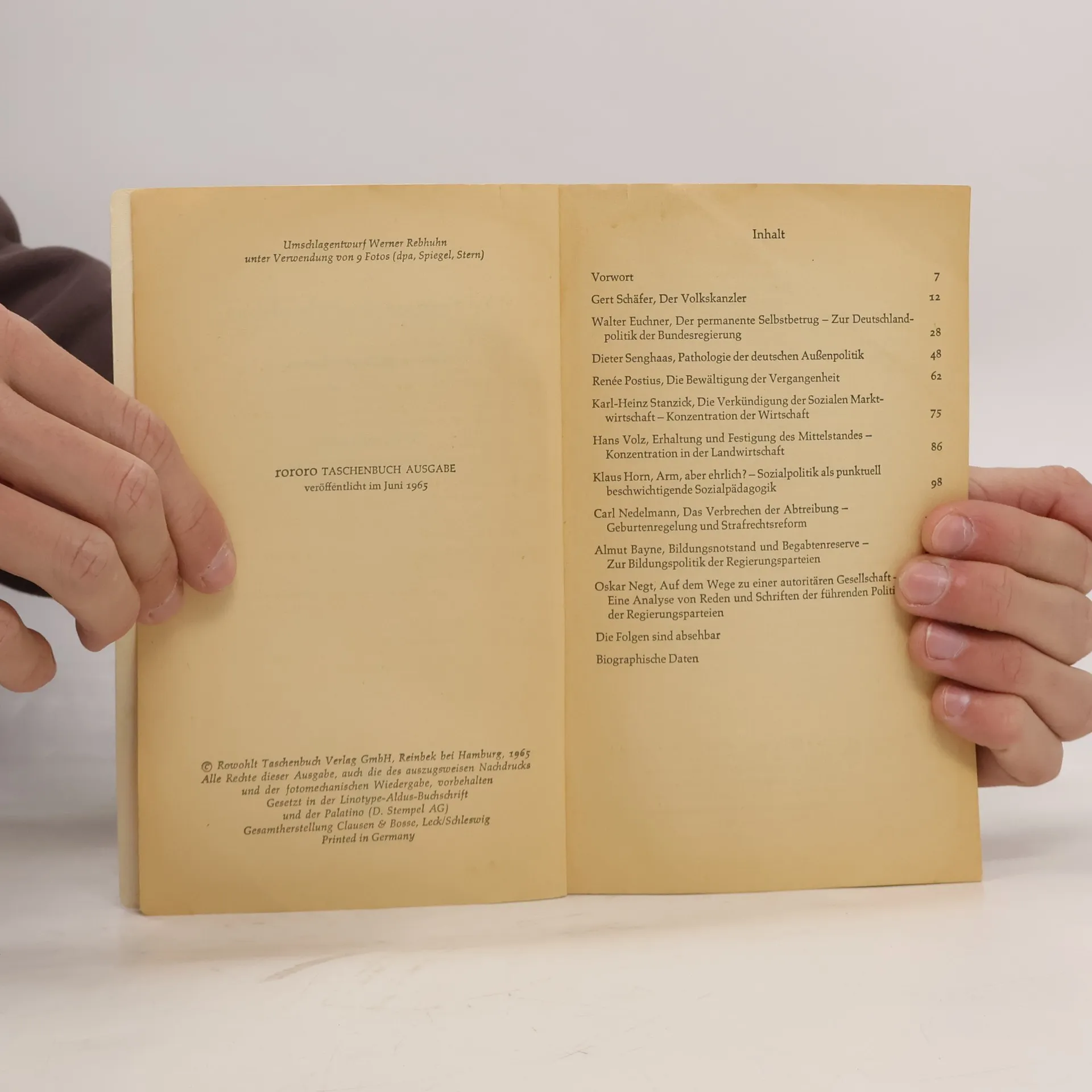 Politik ohne Vernunft oder die Folgen sind absehbar. Zehn streitbare Thesen, Walter Jens, Carl Nedelmann, Gerd Schäfer