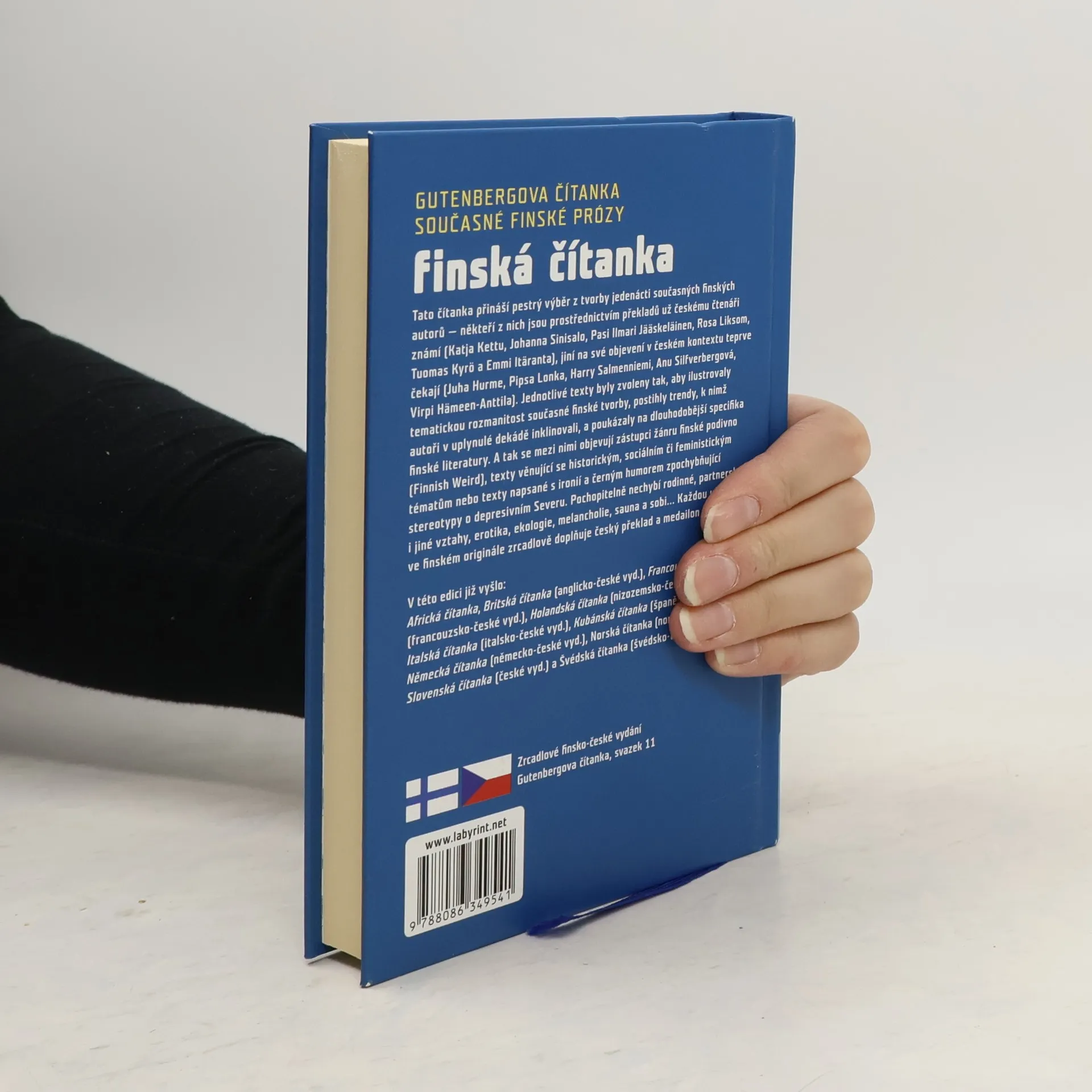 Gutenbergova čítanka současné finské prózy. Čítanka přináší reprezentativní výběr z díla jedenácti současných finských autorů — někteří z nich jsou prostřednictvím překladů už českému čtenáři známí (Johanna Sinisalo, Katja Kettu, Pasi Ilmari Jääskeläinen, Rosa Liksom, Tuomas Kyrö a Emmi Itäranta), jiní na své objevení v českém kontextu teprve čekají (Harry Salmenniemi, Juha Hurme, Pipsa Lonka, Anu Silfverbergová a Virpi Hämeen-Anttila). Jednotlivé texty byly pečlivě zvoleny tak, aby ilustrovaly tematickou rozmanitost současné finské tvorby, postihly trendy, k nimž autoři v uplynulé dekádě inklinovali, a poukázaly na dlouhodobější specifika finské literatury. Objevují se zde zástupci žánru finské podivno (Finnish Weird), stejně jako žánr historický, sociální nebo texty napsané s ironií a černým humorem zpochybňující stereotypy o pochmurném a depresivním Severu. Pochopitelně nechybí rodinné, partnerské i jiné vztahy, erotika, ekologie, melancholie, sauna a sobi… Každá ukázka ve finském originále je zrcadlově doplněna českým překladem a medailonem autora. Čítanka obsahuje rovněž bibliografii českých překladů z finštiny od roku 1990. Kniha je určena nejen studentům a zájemcům o finštinu, ale všem, kdo vyhledávají kvalitní současnou beletrii. 1. vyd.