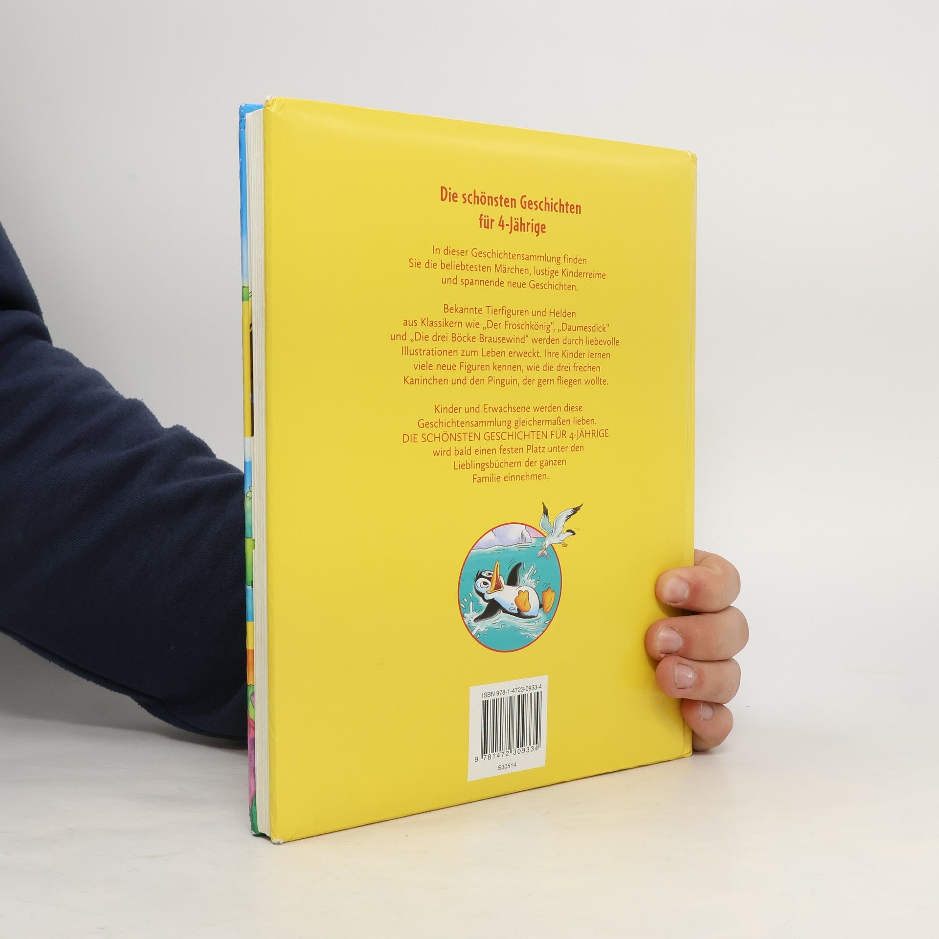 In dieser Geschichtensammlung finden Sie die beliebtesten Märchen, lustige Kinderreime und spannende neue Geschichten. Bekannte Tierfiguren und Helden aus Klassikern wie „Der Froschkönig“, „Daumesdick“ und „Die drei Böcke Brausewind“ werden durch liebevolle Illustrationen zum Leben erweckt. Ihre Kinder lernen viele neue Figuren kennen, wie die drei frechen Kaninchen und den Pinguin, der gern fliegen wollte. Kinder und Erwachsene werden diese Geschichtensammlung gleichermaßen lieben. DIE SCHÖNSTEN GESCHICHTEN FÜR 4-JÄHRIGE wird bald einen festen Platz unter den Lieblingsbüchern der ganzen Familie einnehmen.