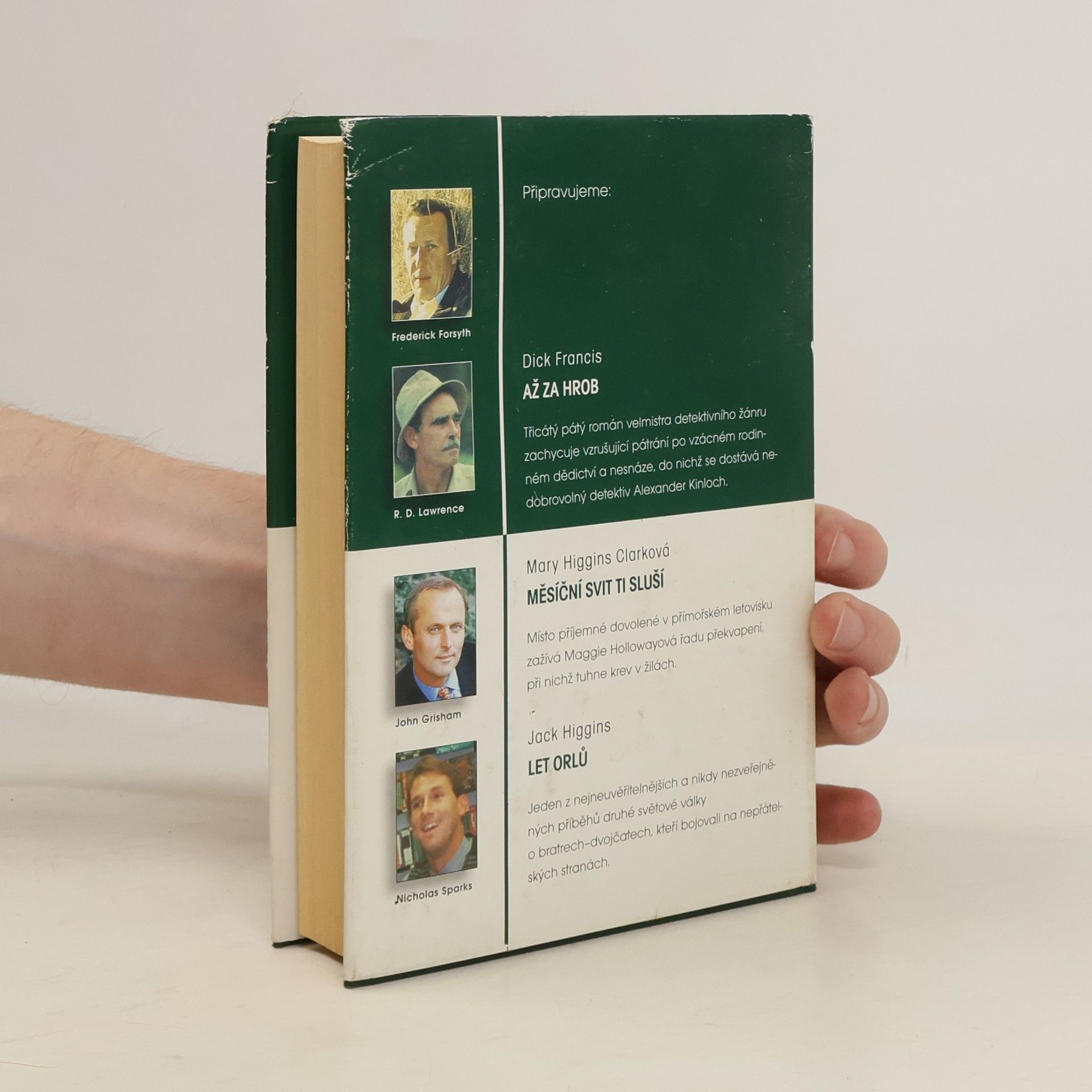 FORSYTH, FREDERICK - IKONA (Icon) - Rusko na prahu nového tisícročia, Rusko na križovatke. Nebezpečný fanatik sa derie k moci a Západ oficiálne nemôže nič robiť. Do samého stredu pekla však potajomky vyšlú bývalého agenta CIA. LAWRENCE, R. D. - BIELA PUMA - (The White Puma) - Mohutná mačka, ktorú napriek bielej srsti takmer nevidno, balansuje na skalisku vysoko v zasnežených horách západnej Kanady. Zovretým údolím o sedemsto metrov nižšie idú dvaja jazdci na koňoch. Nehybné, žlté pumie oči sa do nich vpíjajú - puma ich veľmi dobre pozná. Už jej zabili mamu aj sestru a teraz poľujú priamo na ňu. Lenže puma dnes pozoruje jazdcov, ktorí nič netušia. GRISHAM, JOHN - ADVOKÁT CHUDOBNÝCH (The Street Lawyer) - Zatemňuje sa azda Michaelovi Brockovi rozum ? Vždy si myslel, že vie, čo chce: elegantné obleky, luxusné autá, krásnu ženu a miliónový podiel vo firme. Lenže zrazu mu začalo záležať na voľačom inom. Už nechce robiť právnika len pre peniaze. Chce ho robiť pre pokoj vlastnej duše. SPARKS, NICHOLAS - ZÁPISNÍK (The Notebook) - Muž, ktorému leží na kolenách otvorený zápisník, zožltnutý a ohmataný. Žena, stratená a vystrašená, ktorá si uchovala len úbohé zlomky spomienok na vzácnu lásku. Ale potom jej on začína predčítať.