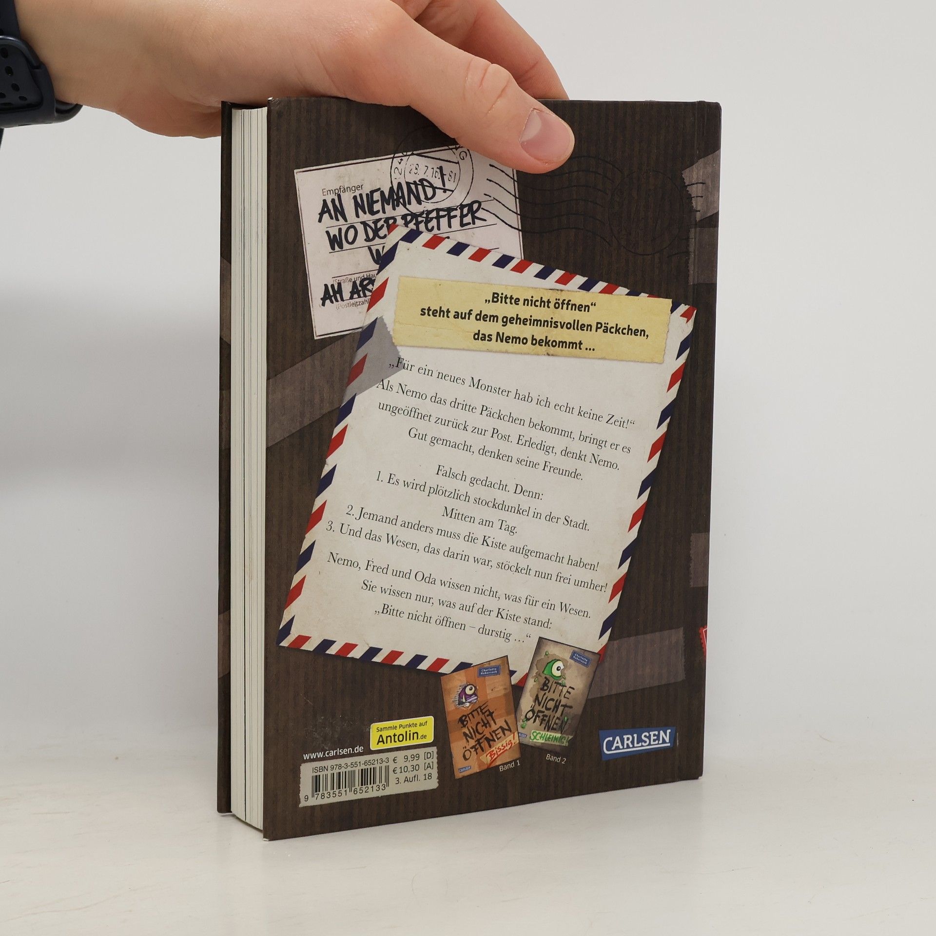 "Bitte nicht öffnen!" steht auf dem geheimnisvollen Päckchen, das Nemo bekommt. Also macht Nemo es auf ...BITTE NICHT ÖFFNEN, BAND 3: „Für ein neues Monster hab ich echt keine Zeit!“ Als Nemo das dritte Päckchen bekommt, bringt er es ungeöffnet zurück zur Post. Erledigt, denkt Nemo. Gut gemacht, denken seine Freunde. Falsch gedacht. Denn: 1. Es wird plötzlich stockdunkel in der Stadt. Mitten am Tag.2. Jemand anders muss die Kiste aufgemacht haben!3. Und das Wesen, das darin war, stöckelt nun frei umher!Nemo, Fred und Oda wissen nicht, was für ein Wesen. Sie wissen nur, was auf der Kiste stand: „Bitte nicht öffnen – durstig …“Nach dem Kinderbuch-Bestseller-Erfolg von Band 1 und 2 nun endlich da: ein neues lustiges und turbulentes Abenteuer rund um Schule, Freundschaft und ein verlorenes Wesen, das nach Hause will! ***Voller überraschender Wendungen, Sprachwitz und mit vielen Bildern vom unverwechselbaren Fréderic Bertrand. ***Das perfekte Buch für Jungs und Mädchen – und ihre Eltern! ***