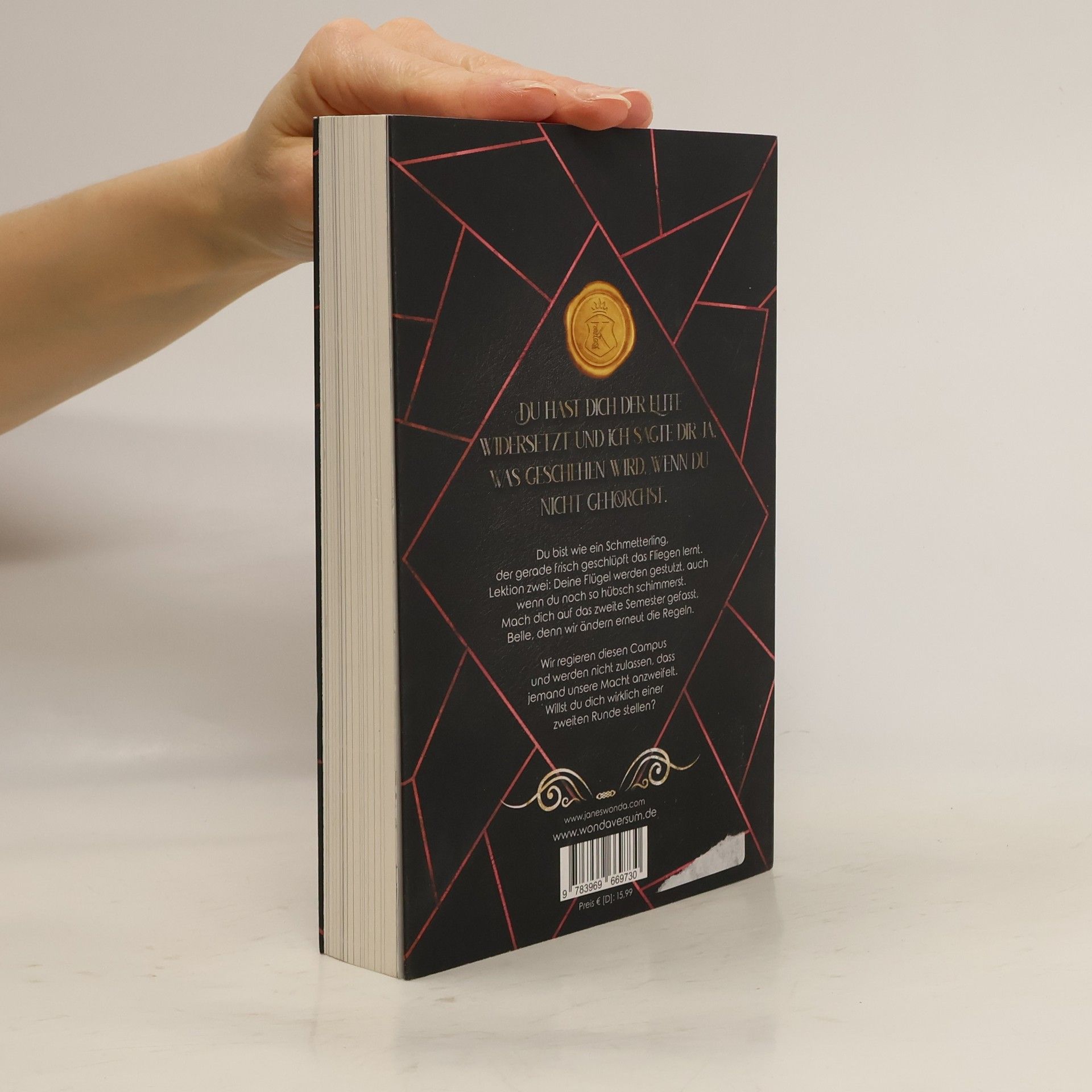 Du hast dich der Elite widersetzt und ich sagte dir ja, was geschehen wird, wenn du nicht gehorchst. Wir regieren diesen Campus und werden nicht zulassen, dass jemand unsere Macht anzweifelt. Willst du dich wirklich einer zweiten Runde stellen? Mable ist vom Campus geflohen, doch sie wird ihr Stipendium nicht aufgeben. Als sie zurück nach Kingston kommt, rechnet sie mit dem Schlimmsten. Tatsächlich tritt aber nicht nur ein neuer Verbündeter auf das Feld, um ihr zu helfen. Wer ist Romeo? Auf welcher Seite steht Vance? Und wieso versuchen die Kings plötzlich, sie vor dem Spiel zu beschützen? Du bist wie ein Schmetterling, der gerade frisch geschlüpft das Fliegen lernt. Lektion zwei: Deine Flügel werden gestutzt, auch wenn du noch so hübsch schimmerst. Mach dich auf das zweite Semester gefasst, Belle, denn wir ändern erneut die Regeln. Flatter, flatter, kleiner Falter. Hoffe, dass ich dich niemals fange. Dark College. Bully Romance. Reverse Harem. Du willst nicht teilen. Sie schon. VERY BAD ELITE Kingston University 2 Band 2 der dunkelromantischen College-Reihe von Bestseller-Autorin J. S. Wonda Enthält gesammelte Gespräche und Interviews zu Band 1 und 2 der Reihe im Anhang • Alle Folgebände handeln von denselben Hauptfiguren und erscheinen voraussichtlich mit Abstand von 4-7 Wochen • Enthält direkte Sprache und explizite Szenen • Bitte verantwortungsvoll lesen