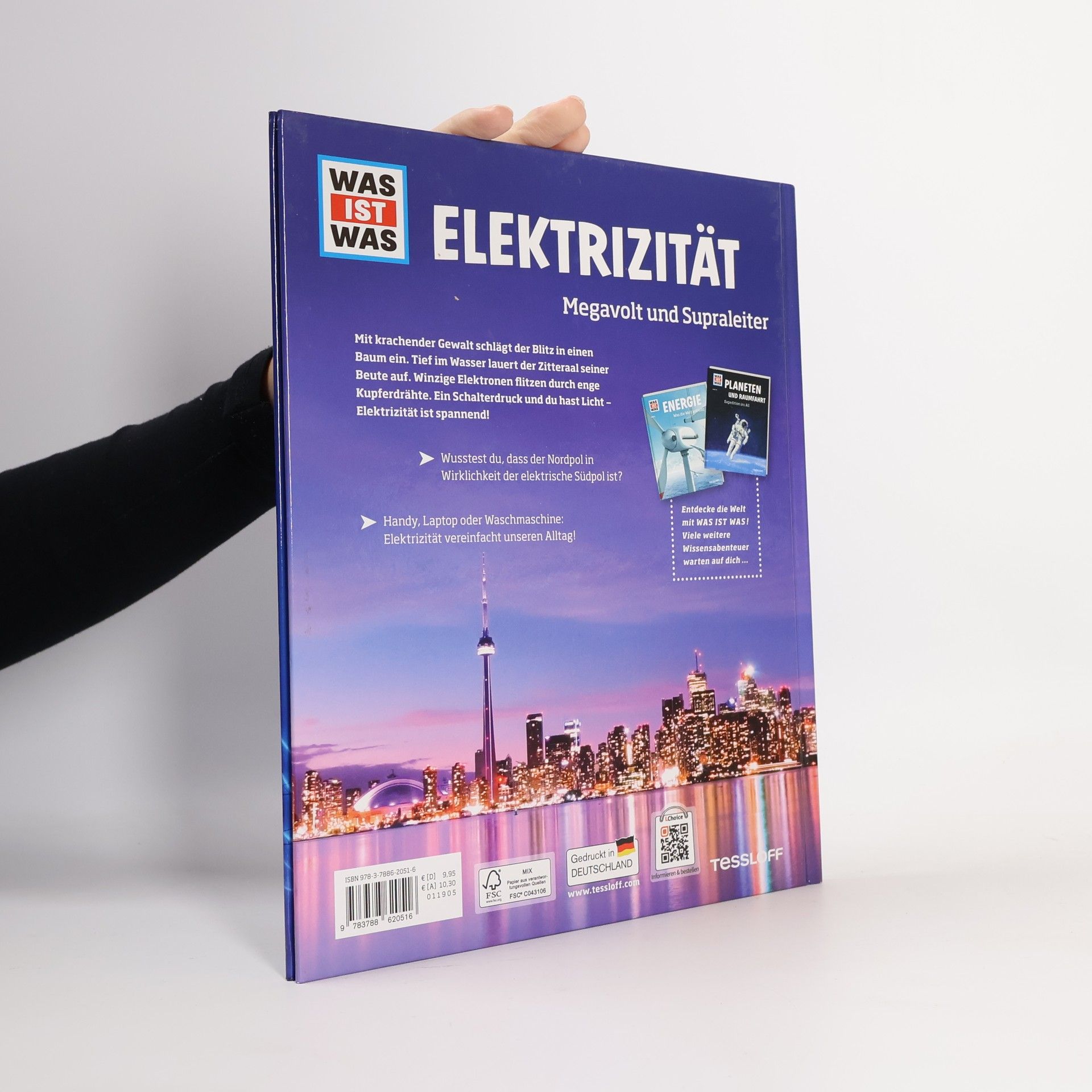 Mit krachender Gewalt schlägt der Blitz in einem Baum ein. Tief im Wasser lauert der Zitteraal seiner Beute auf. Winzige Elektronen flitzen durch enge Kupferdrähte. Ein Schalterdruck und es wird hell - Elektrizität gehört zu unserem Leben. Wie kommt der Strom in die Steckdose? Wer hat die Glühlampe erfunden? Was ist der Unterschied zwischen Strom und Spannung? WAS IST WAS begibt sich auf Spurensuche. Außerdem erfahren kleine Nachwuchsforscher, wie sie sich selbst eine Batterie basteln können.