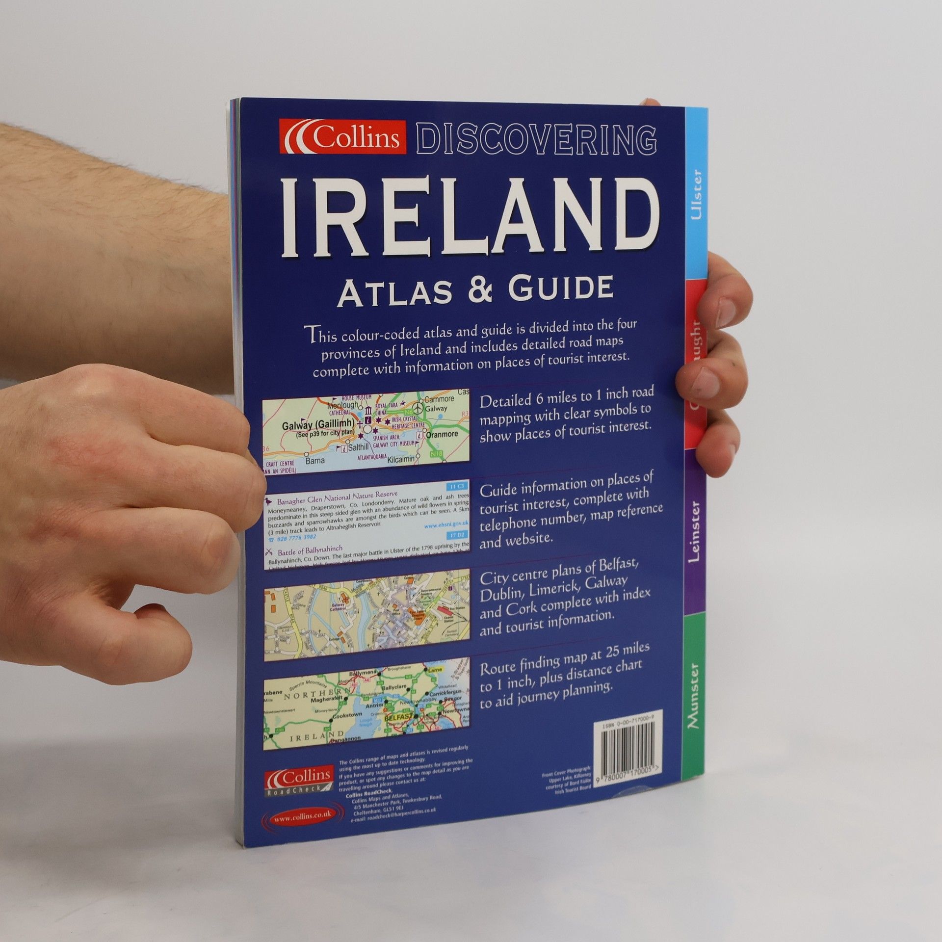 This is a full colour atlas of Ireland with brief descriptive text, information, websites and phone numbers for all the best places to visit. The atlas and guide is divided into the four provinces of Ireland and is fully colour coded to aid use. Features include: route planning maps of Ireland at approximately 25 miles to one inch; a map showing the four provinces of Ireland; detailed six miles to one inch road mapping; and information on places to visit in each province. There are also large scale town and city centre plans of Belfast, Cork, Dublin and Limerick.
