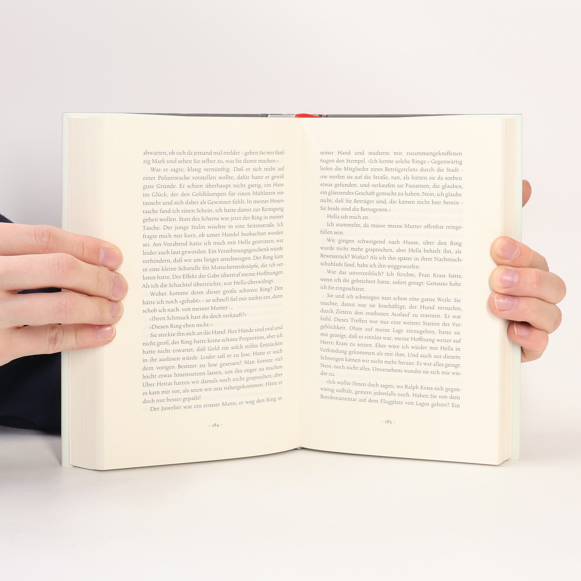 Ralph Krass ist ein großzügiger Geschäftsmann, der Menschen mit kannibalischem Appetit verbraucht. Ist er unendlich reich oder ein Hochstapler, kalt berechnend oder träumt er hemmungslos? Er möchte sich seine Gesellschaft kaufen und stets der Schenkende sein. Als Lidewine, eine junge Abenteurerin und Assistentin eines Zauberers, in seinen Kreis tritt, bietet er ihr einen ungewöhnlichen Pakt an. Sein Sekretär, Dr. Jüngel, beobachtet das Geschehen mit Neid und Eifersucht. Nach einem Eklat, der die Gesellschaft auseinanderbringt, gelingt es Dr. Jüngel, in seinem Zufluchtsort in der französischen Provinz die Mosaiksteine der Ereignisse zu ordnen. Menschen wie der stumme Kuhhirte Toussaint, der Schuster Desfosses und Madame Lemoine mit ihren Wellensittichen vermitteln ihm, wie alles rätselhaft zusammenhängt. Dieser atmosphärische Roman beleuchtet, was das Verstreichen von Zeit mit Menschen tut, und vereint Elemente eines Liebesromans mit einer Geschichte über Verlust und magisches Wiederfinden. Geprägt von leiserem Humor, ist er vor allem dunkel und ergreifend schön. Die Erzählung spannt einen Bogen von Neapel über Frankreich bis nach Kairo und zählt zu den fesselndsten und überraschendsten Werken des Autors.