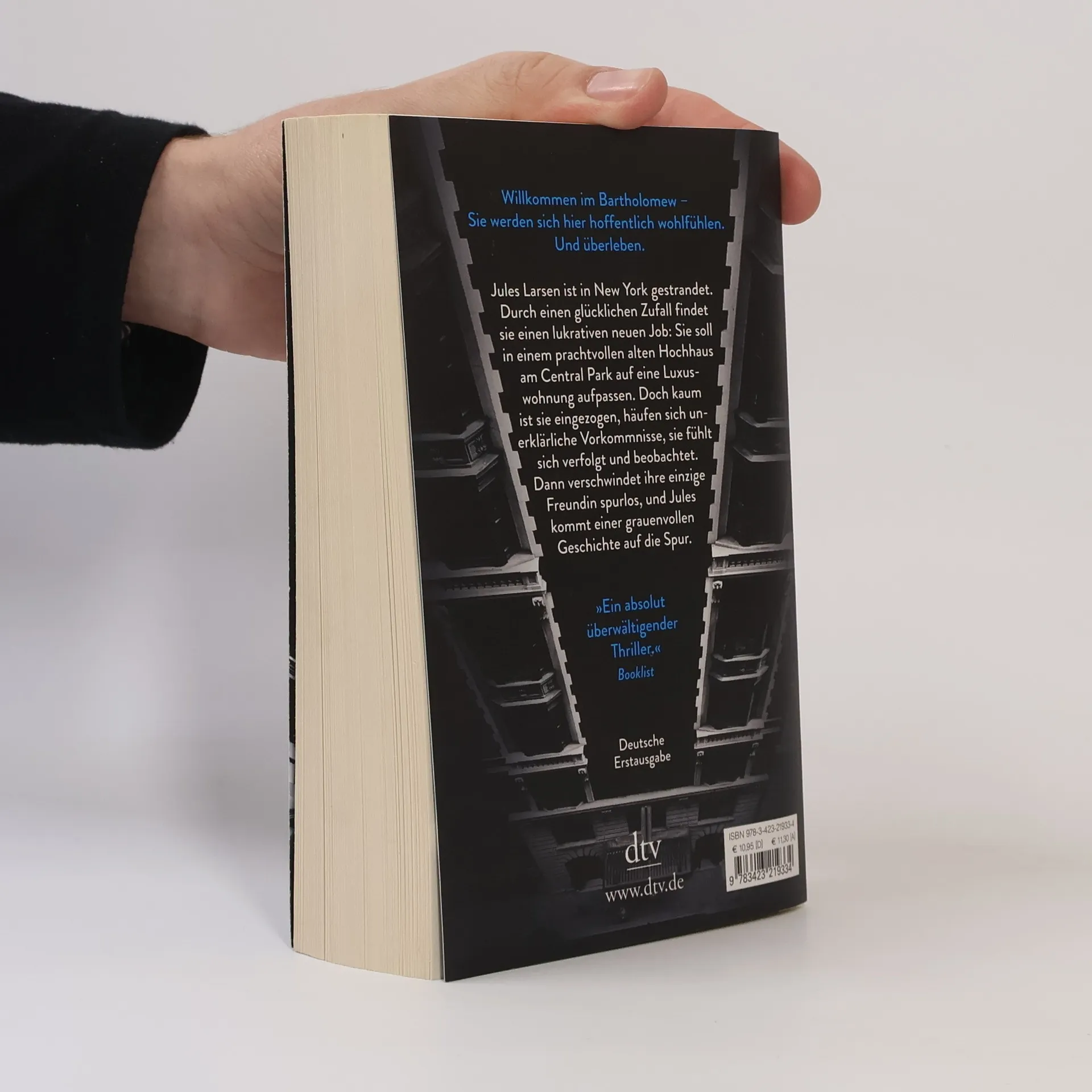 Ein Haus zum Träumen. Und zum Sterben. Jules hat einen Wahnsinns-Job an Land gezogen: Sie soll im Bartholomew, einem prachtvollen alten Hochhaus am Central Park, auf eine Luxuswohnung aufpassen. Und dafür 1000 Dollar die Woche kassieren! Einige seltsame Bedingungen gibt es allerdings: Sie muss jede Nacht im Apartment schlafen und darf niemanden in die Wohnung lassen. Kaum ist Jules eingezogen, häufen sich unheimliche Vorkommnisse. Von Ingrid, ebenfalls »Apartmentsitterin«, erfährt sie, dass das Bartholomew ein dunkles Geheimnis hat. Als Ingrid verschwindet, versucht Jules, das Geheimnis zu lüften – und gerät dabei selbst in größte Gefahr.