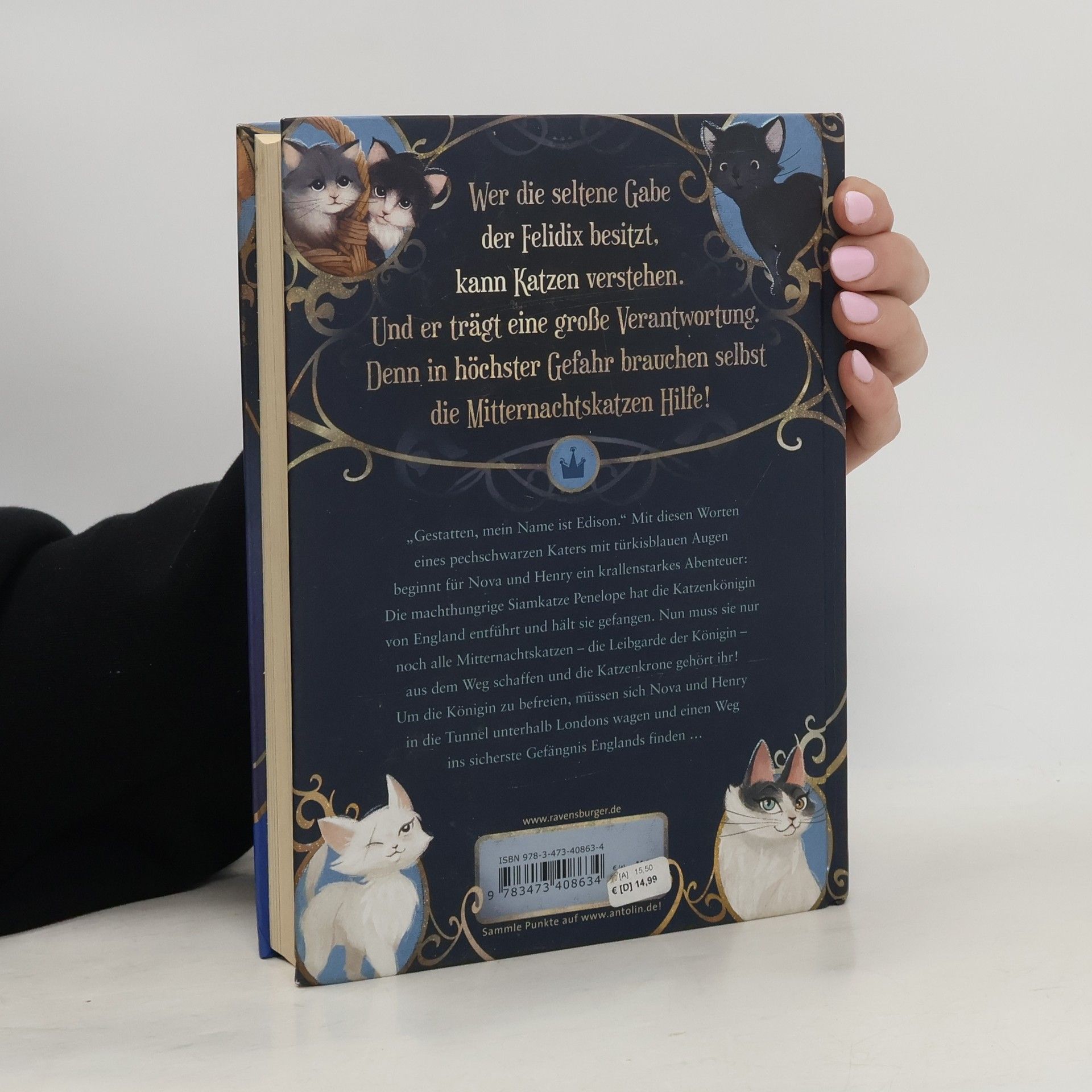 Bist du bereit für die Schule der Katzenflüsterer? Nova und Henry haben eine besondere Gabe: Sie können mit Katzen sprechen. Aber nicht nur das! Sie sind Felidix, Katzenbeschützer, und müssen ein fellsträubendes Verbrechen verhindern: Die Siamkatze Penelope hat die rechtmäßige Katzenkönigin von England entführt und hält sie gefangen. Nun muss sie nur noch alle Mitternachtskatzen – die Leibgarde der Königin – aus dem Weg schaffen und die Katzenkrone gehört ihr! Für Nova und Henry beginnt ein Abenteuer, das sie durch ganz London führt. Alle Abenteuer mit den Mitternachtskatzen: Band 1: Die Schule der Felidix Band 2: Die Hüter des Smaragdsterns Band 3: Der König der Federträger Band 4: Der Geisterkater von Bakerloo Adventskalender: Mr Mallorys magisches Weihnachtsgeheimnis