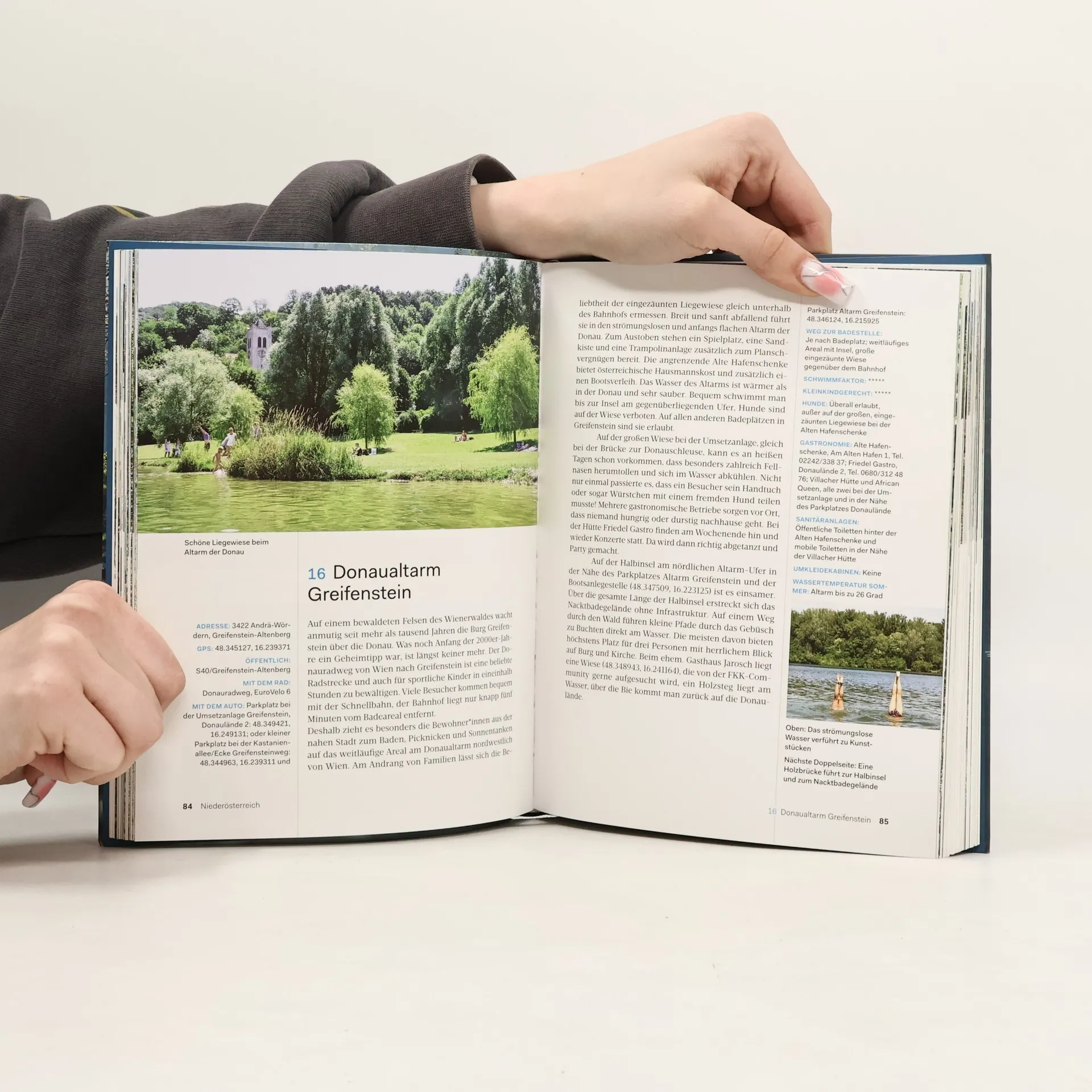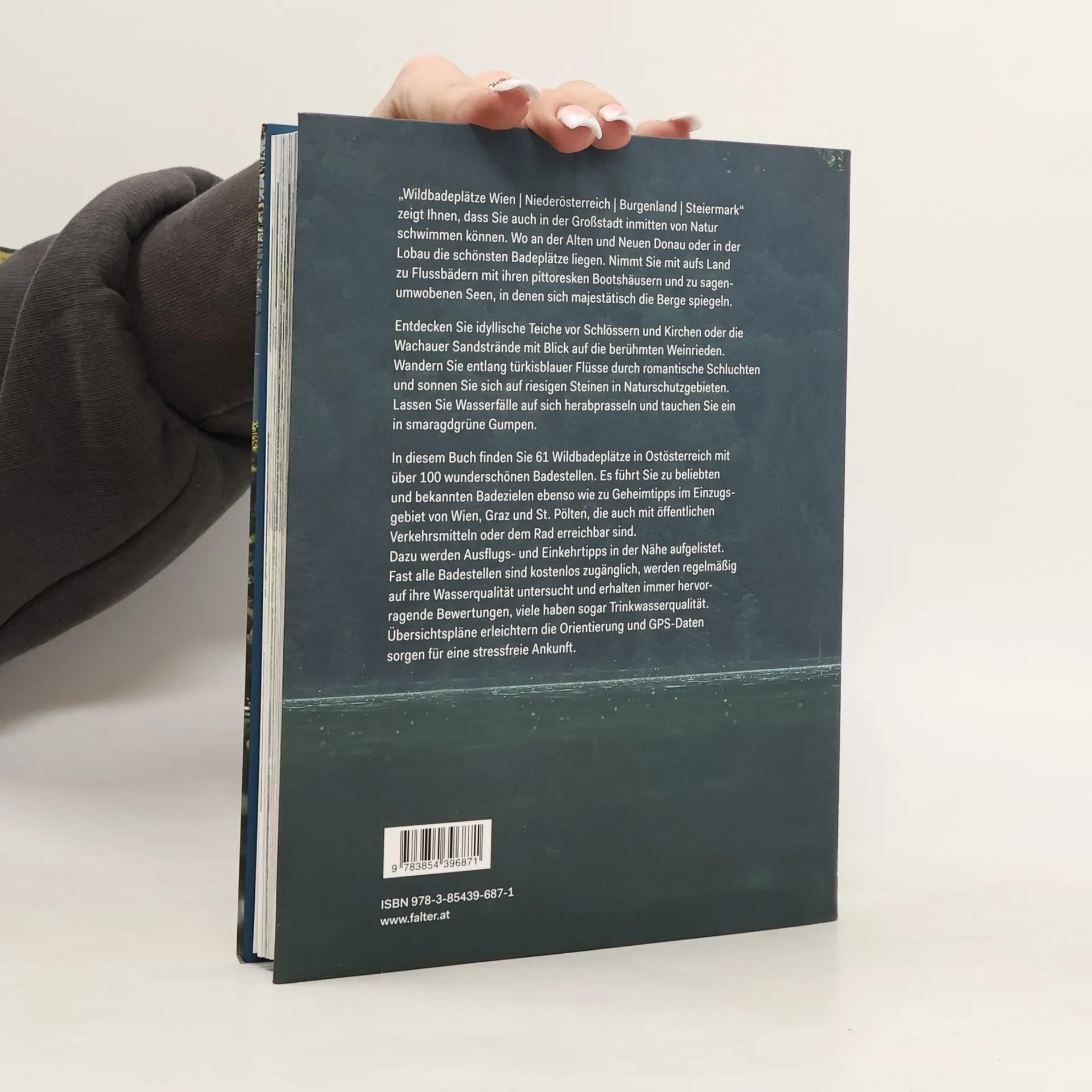 Der Guide zeigt, dass man auch in der Großstadt inmitten von Natur schwimmen kann. Wo an der Alten und Neuen Donau oder in der Lobau die schönsten Badeplätze liegen. Er führt aufs Land zu Flussbädern mit ihren pittoresken Bootshäusern und zu sagenumwobenen Seen, in denen sich majestätisch die Berge spiegeln. Eine Entdeckungsreise zu idyllischen Teichen vor Schlössern und Kirchen, den Wachauer Sandstrände mit Blick auf die berühmten Weinrieden, entlang türkisblauer Flüsse durch romantische Schluchten und sonnigen Steinen in Naturschutzgebieten, zu prasselnden Wasserfällen und smaragdgrüne Gumpen. 61 Wildbadeplätze in Ostösterreich mit über 100 wunderschönen Badestellen, die auch mit öffentlichen Verkehrsmitteln oder dem Rad erreichbar sind. Dazu werden Ausflugs- und Einkehrtipps in der Nähe aufgelistet. Fast alle Badestellen sind kostenlos zugänglich, werden regelmäßig auf ihre Wasserqualität untersucht und erhalten immer hervorragende Bewertungen, viele haben sogar Trinkwasserqualität. Übersichtspläne erleichtern die Orientierung und GPS-Daten sorgen für eine stressfreie Ankunft.
