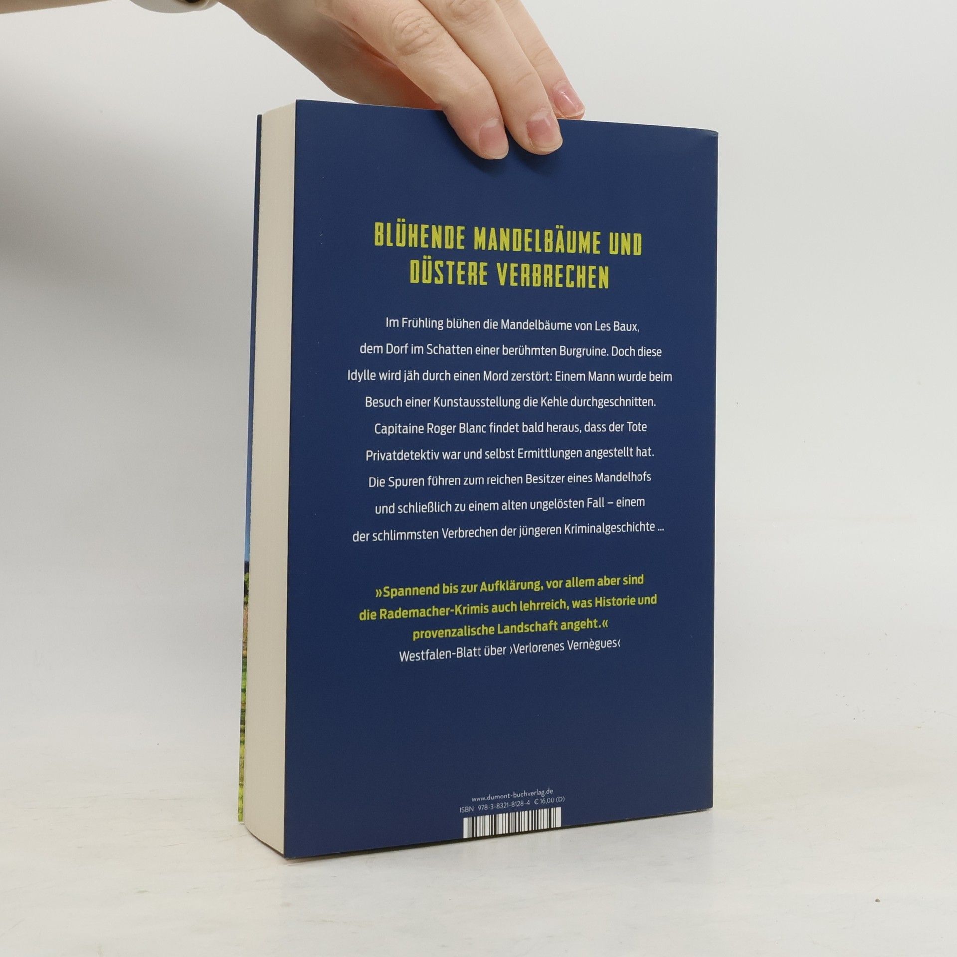 Februar in der Provence – es wird langsam Frühling, die Mandelbäume blühen. Und Capitaine Roger Blanc wird nach Les Baux gerufen. In einem düsteren Tal unterhalb der berühmten Burgruine liegen die Carrières de Lumières, ein aufgegebener Steinbruch, in dem nun Kunstausstellungen gezeigt werden. Während eines Besuchs wurde ein Mann ausgeraubt und brutal ermordet. Wie sich zeigt, war das Opfer, Patrick Ripert, Privatdetektiv. Der wohlhabende Besitzer eines Mandelhofs in der Nähe hatte ihn erst wenige Tage zuvor engagiert, weil ein Bild aus seiner umfangreichen Sammlung gestohlen worden war. Wie hängt all das zusammen? Blanc findet heraus, dass Ripert heimlich noch ganz andere Nachforschungen angestellt hat, und stößt auf ein grausames Verbrechen: Vor sieben Jahren wurde eine ganze Familie ausgelöscht, es war eines der blutigsten Dramen der französischen Kriminalgeschichte. Der Mörder ist damals in der Provence untergetaucht – und nie wieder hat jemand eine Spur von ihm gefunden. Bis jetzt. Als ein weiterer Mord geschieht, ist klar, dass Blanc dem Täter sehr nahe gekommen sein muss …