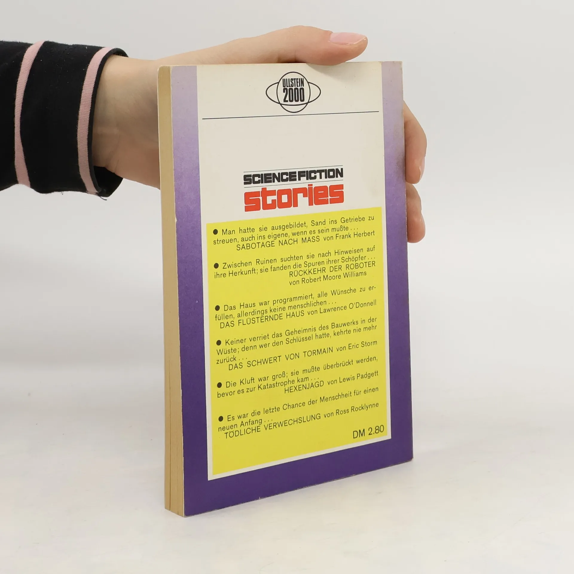 Enthält folgende Stories: Frank Herbert: Sabotage nach Maß Robert Moore Williams: Rückkehr der Roboter Henry Kuttner & C. L. Moore (als Lawrence O'Donnell): Das flüsternde Haus E. C. Tubb (als Eric Storm): Das Schwert von Tormain Henry Kuttner & C. L. Moore (als Lewis Padgett): Hexenjagd Ross Rocklynne: Tödliche Verwechslung