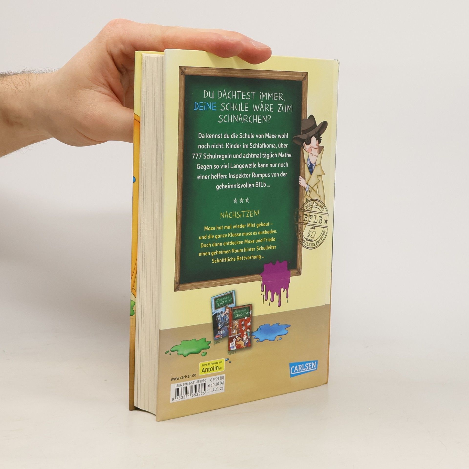 *** „Bitte leise atmen!“ heißt es für Maxe, Frieda und ihre Klasse in der langweiligsten Schule der Welt. Ein Fall für Inspektor Rasputin Rumpus von der Behörde für Langeweilebekämpfung! *** Über 777 Schulregeln und achtmal täglich Mathe: Maxes Schule ist zum Einschlafen! Doch dann taucht ein geheimnisvoller Inspektor auf. Auch in Band 2 hat Maxe mal wieder Mist gebaut. Die ganze Klasse muss es ausbaden. Doch dann erhält Maxe einen geheimnisvollen Auftrag. Zusammen mit Frieda findet er einen geheimen Raum hinter Schulleiter Schnittlichs Bettvorhang ... Eine neue, turbulente Reihe für Jungs und Mädchen - Schulchaos plus Agenten-Spannung plus viele Bilder = Lesespaß pur! Lesen lernen leichtgemacht! Kurze Kapitel, viele Bilder! „Witzige Mischung aus Klassenchaos und Agentenspannung“, Spick 415, Juli/August 2017