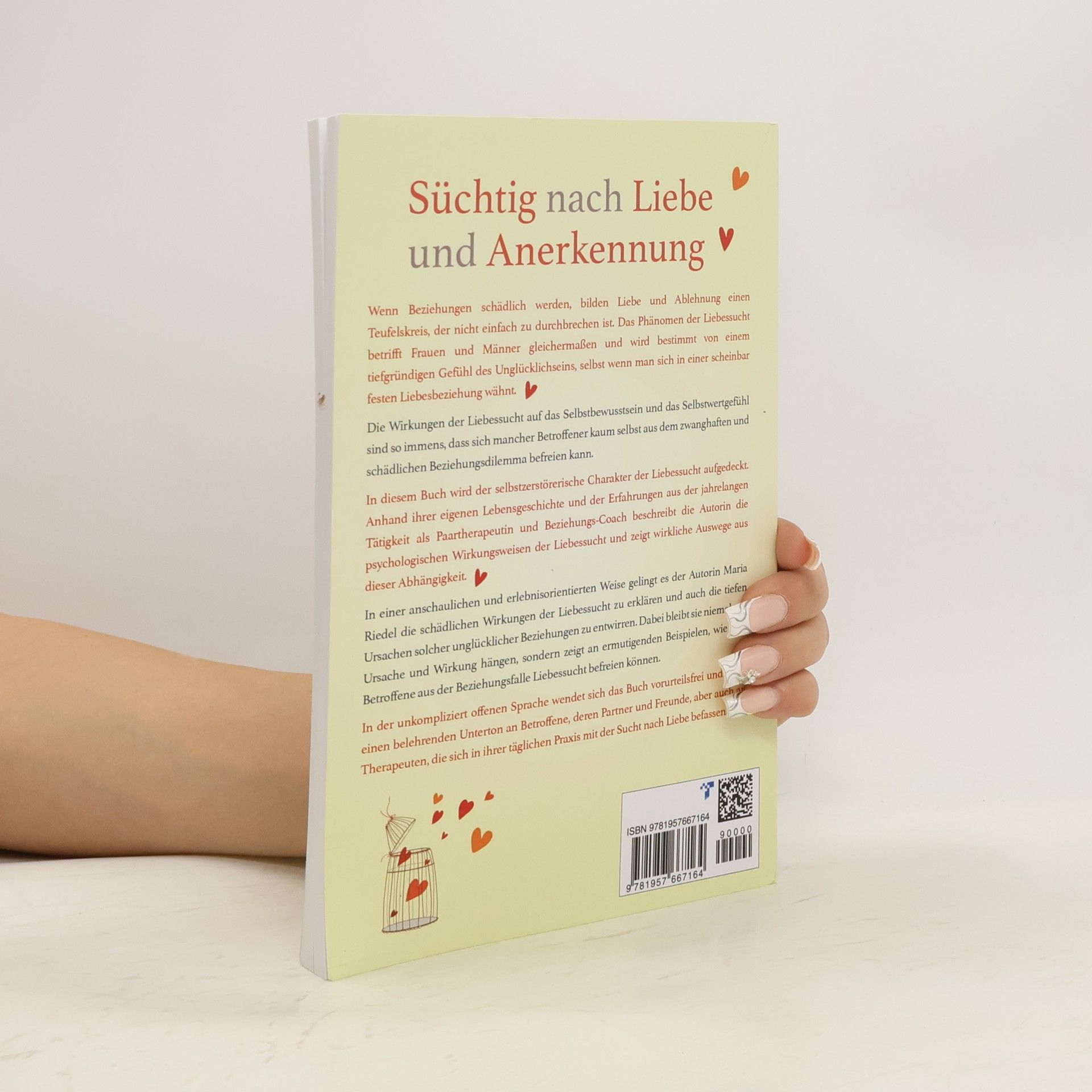 Wie du dich aus der Sucht nach Liebe befreien kannst, ohne eine enttäuschende Beziehung nach der anderen zu Was zeichnet eine gute Liebe aus? Laut Beziehungsexperten sind dies im Wesentlichen 6 Aber es gibt auch die andere Form von Liebe , die in der krankhaften Liebessucht müDoch so weit muss es nicht kommen. Die Autorin Maria Riedel erlebte selbst die Auswirkungen der Sucht nach Liebe und musste viele Jahre ihres Lebens mit den Folgen klarkommen. Erst die Aufarbeitung und die intensive Beschäftigung mit der Thematik haben ihr geholfen, aus der Beziehungsfalle Liebessucht zu entkommen. Heute arbeitet die Autorin als psychologische Beraterin und Beziehungs-Coach und hilft betroffenen Menschen, das Dilemma der Liebessucht zu erkennen und den Weg aus dem Teufelskreis zu finden. In der Zusammenfassung von Erfahrungen, wissenschaftlichen Ansätzen und praxisorientierten Lösungswegen ist ein Ratgeber entstanden, der sich sehr persönlich mit folgenden Fragestellungen beschäWenn du dich nicht aktiv mit der Problematik auseinandersetzt, stehst du vor einem qualvollen Weg, der von der späten Einsicht geprägt sein wird, dass alles hätte anders werden können. Es liegt also an dir, ob und wann du den Teufelskreis Liebessucht durchbrechen kannst. Den sichersten Weg dazu zeigt dir dieses Buch auf. Wage jetzt den ersten Schritt in ein neues, glücklicheres und liebevolleres Leben.