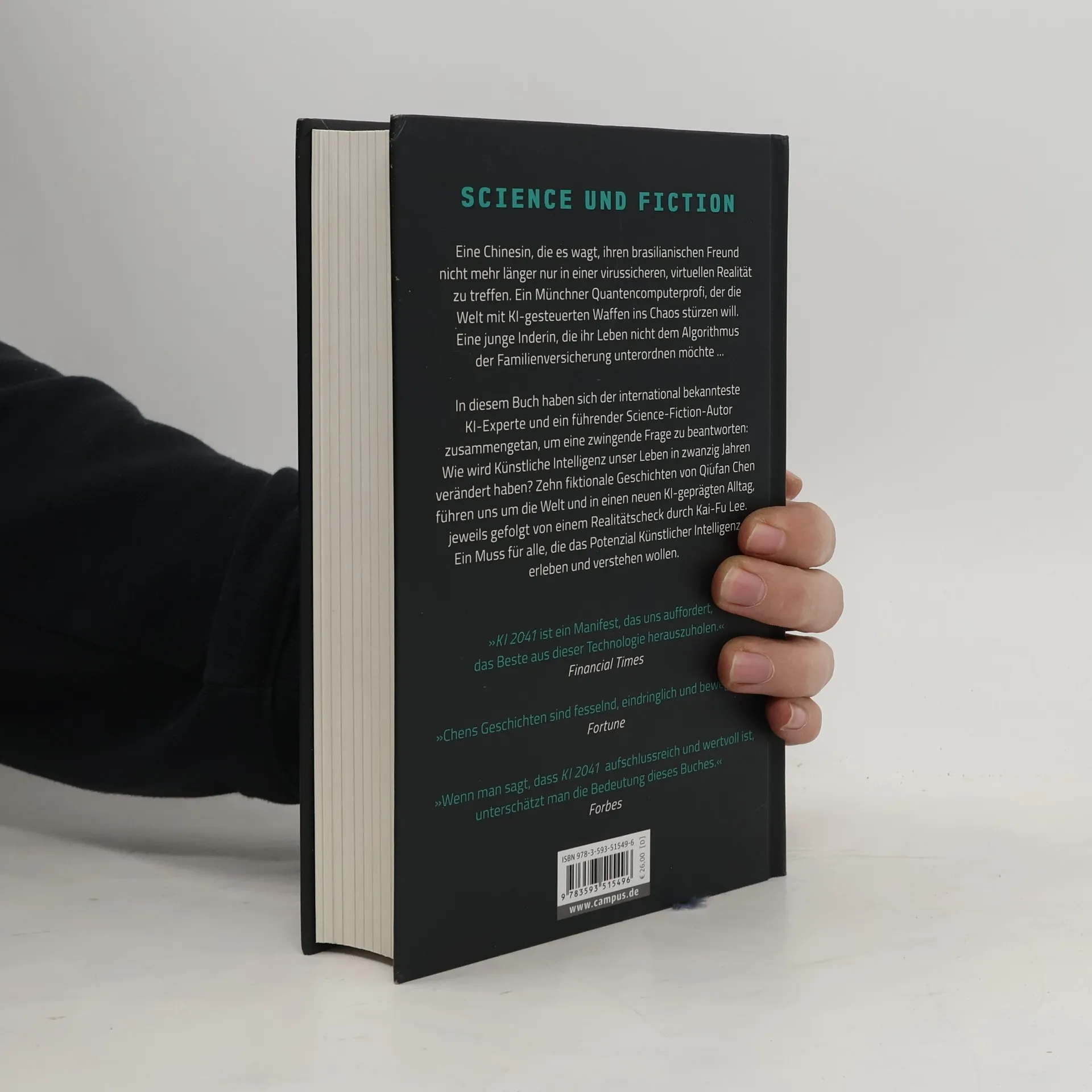 Eine Chinesin, die es wagt, ihren brasilianischen Freund nicht mehr länger nur in einer virussicheren, virtuellen Realität zu treffen. Ein junger Mann in Sri Lanka, der mittels autonomer Fahrzeuge Leben rettet. Ein Münchner Quantencomputerprofi, der die Welt mit KI-gesteuerten Waffen ins Chaos stürzen will ... In KI 2041 haben sich der international bekannteste KI-Experte und ein führender Science-Fiction-Autor zusammengetan, um eine zwingende Frage zu beantworten: Wie wird künstliche Intelligenz unser Leben in zwanzig Jahren verändert haben? Zehn Geschichten führen uns um die Welt und in einen neuen KI-geprägten Alltag, jeweils gefolgt von einem Realitätscheck durch Kai-Fu Lee. Ein Muss für alle, die das Potenzial künstlicher Intelligenz erleben und verstehen wollen.