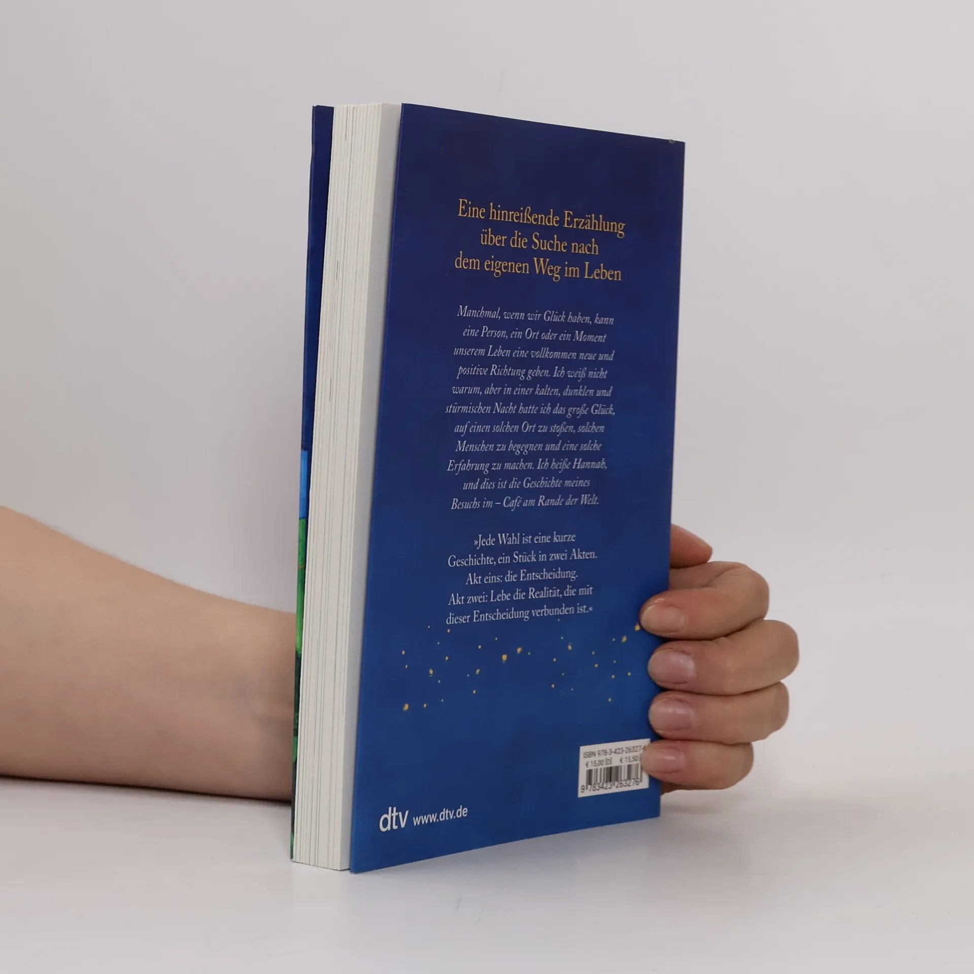 Wir haben immer eine Wahl, unser Leben zu gestalten Hannah, 15, hat schon viel durchgemacht. Von den Eltern vernachlässigt, musste sie früh lernen, für sich selbst zu sorgen. Die Welt erscheint ihr abweisend, sie fühlt sich nirgends so recht zugehörig. Jetzt steht sie vor ihrer bisher größten Herausforderung: sich zu öffnen und zu erkennen, dass sie viel mehr aus ihrem Leben machen kann, als sie glaubt. Vieles kommt ihr merkwürdig vor in diesem Café. Wer bist du? Was wird Dich ausmachen? Warum bist du hier? Diese Fragen entdeckt sie auf der Rückseite der Speisekarte und darüber kommt sie mit den Menschen ins Gespräch. Sie zeigen ihr eine Welt voller Möglichkeiten. Hannah lernt, dass sie immer eine Wahl hat und dass es ihre Entscheidung ist, wie ihr Leben weiter verläuft.