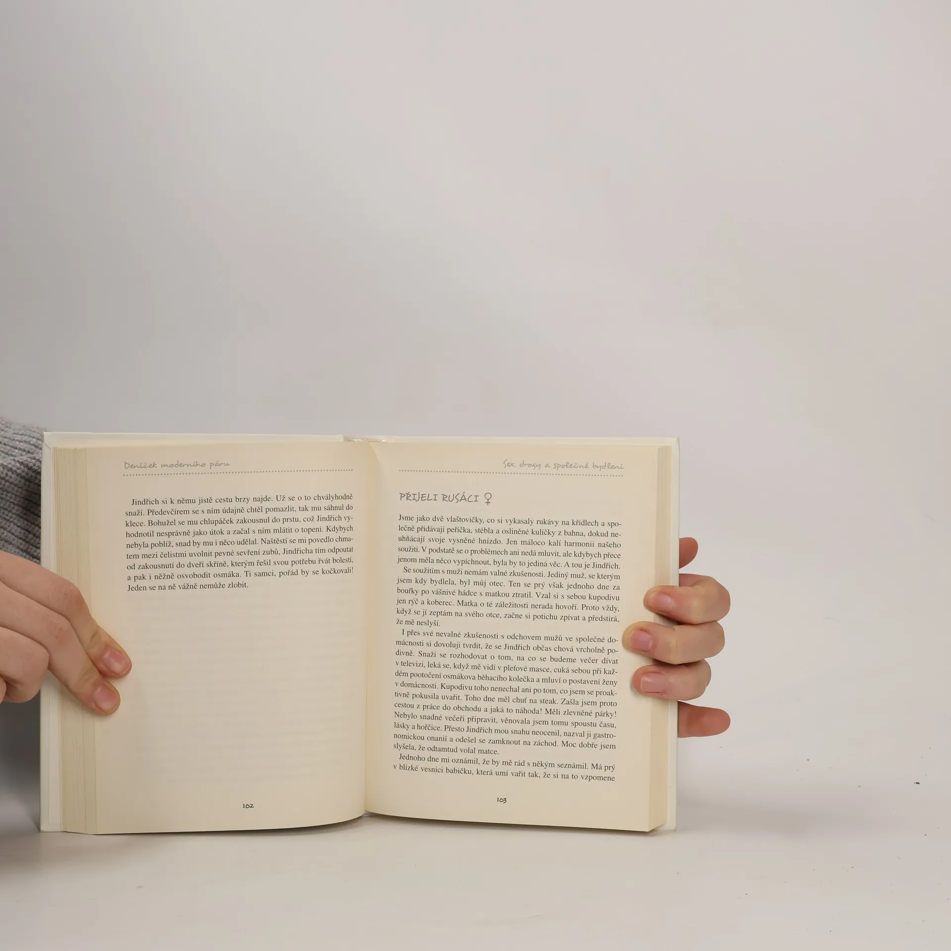 Kdo by neznal eskapády „moderního fotra“, které Dominik Landsman zachytil ve svých úspěšných Deníčcích? Nová kniha, kterou napsal společně s blogerkou a spisovatelkou Zuzanou Hubeňákovou, se pouští na stejnou půdu, ale zpátky do doby, kdy ještě nebyl otcem. Jindřich a Nataša s ironií a černým humorem sobě vlastním popisují své seznámení, sestěhování a nakonec i početí dítěte a mezitím neodolatelně glosují rozdíly mezi muži a ženami, vztahové stereotypy, různé fáze zamilovanosti nebo nástrahy společného bydlení. Deníček moderního páru zachovává styl předchozích dílů, ale díky spoluautorství je bohatší o dva rozdílné, ale srovnatelně humorné styly. Pojďte zjistit, co se dělo předtím, než na svět přišel Čeněk!