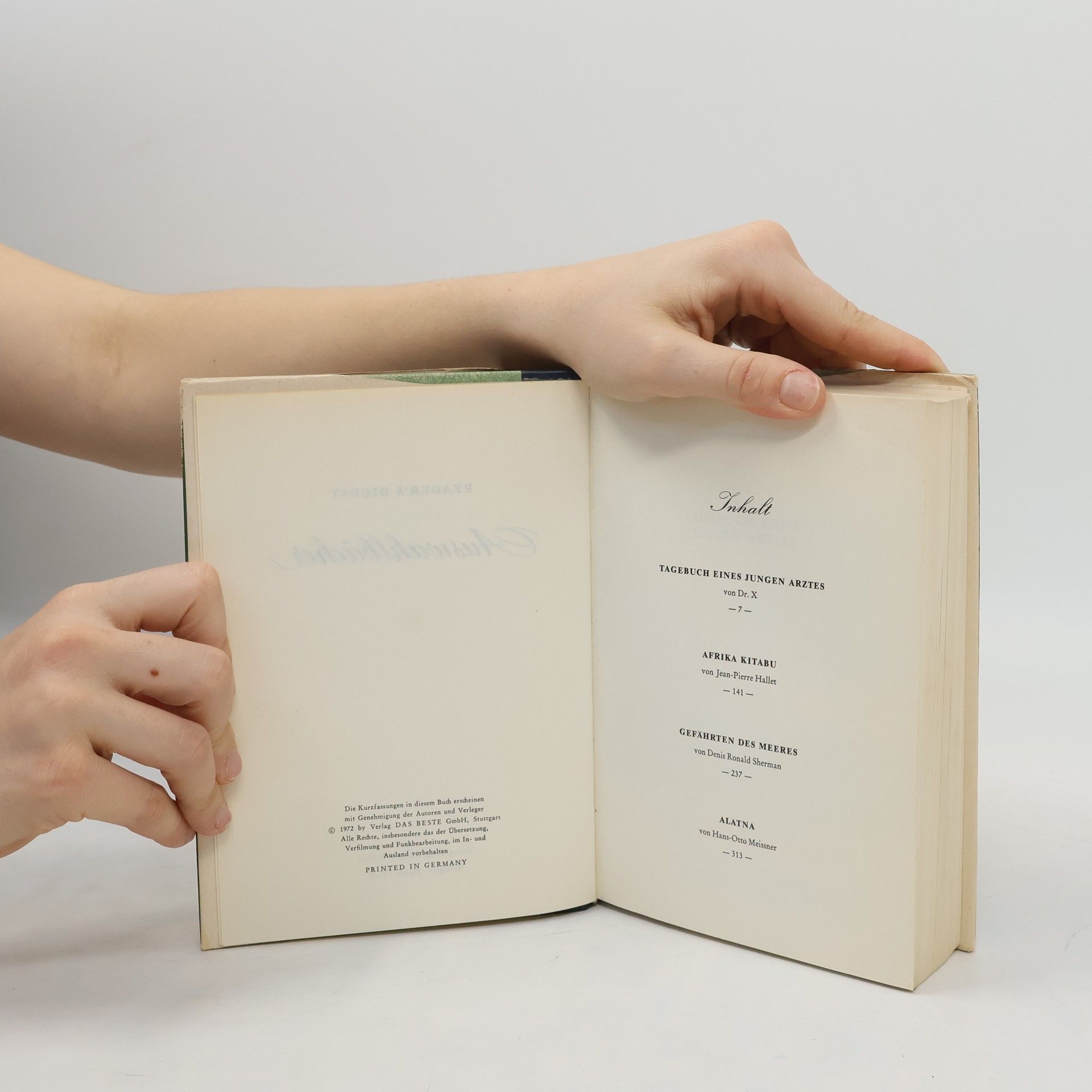 Reader's Digest Auswahlbücher: Tagebuch eines jungen Arztes. Afrika Kitabu. Gefährten des Meeres. Alatna, Denis Ronald Sherman, Hans-Otto Meissner, Dr. X, Jean-Pierre Hallet