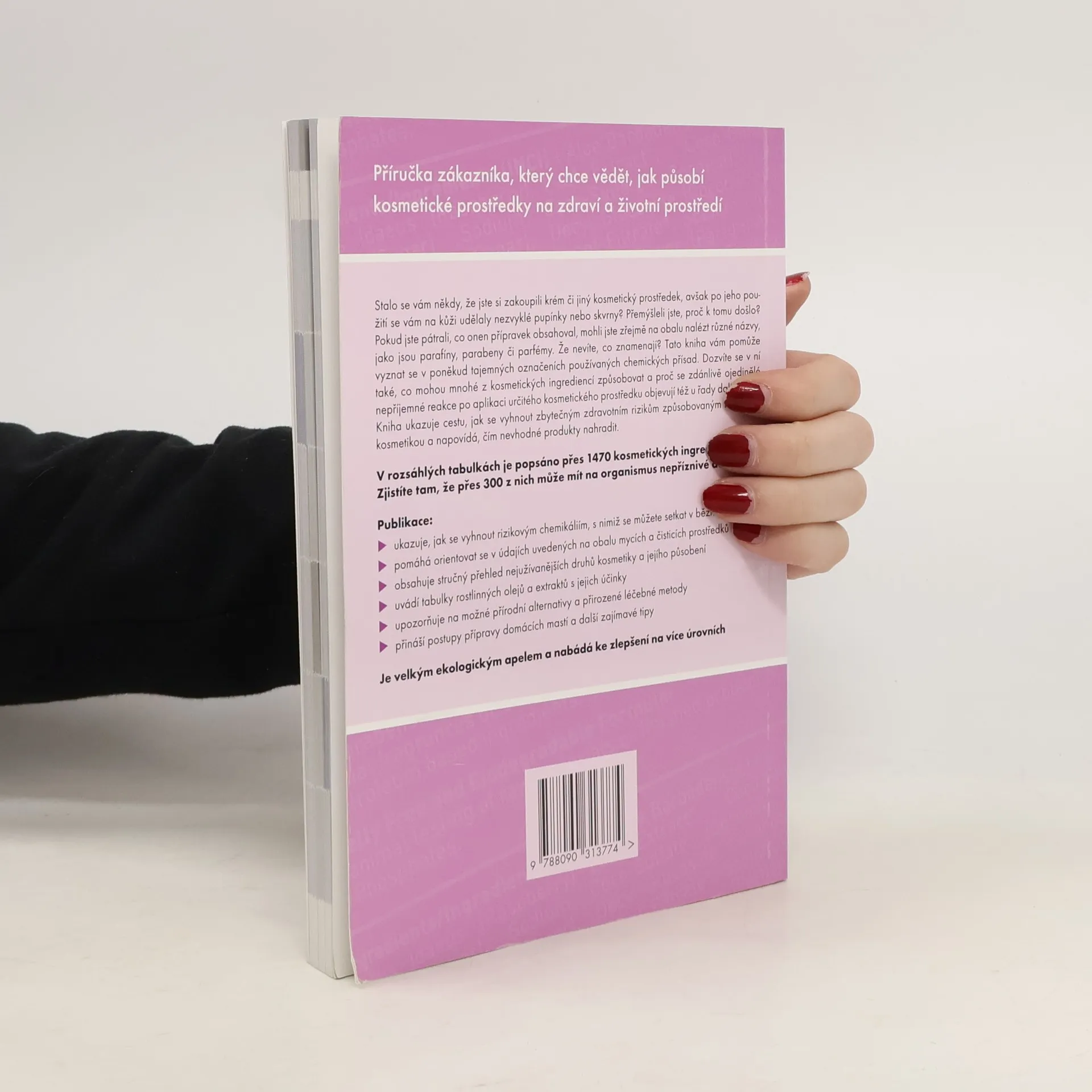 Praktická příručka zákazníka, který chce vědět, jak kosmetické a další prostředky denní péče působí na tělo, duši a okolní přírodu. V prvé řadě má čtenáři pomoci orientovat se v poněkud tajemných označeních použitých přísad, uváděných na obalech běžné kosmetiky. Rozsáhlé tabulky, které tvoří součást této knihy, seznamují s více než 1470 kosmetickými ingrediencemi. Jsou v nich uvedeny potenciální přínosy či rizika každé z nich pro zdraví i životní prostředí a zároveň i jejich číselné hodnocení. Autor poskytuje návod, jak se vyhnout škodlivým sloučeninám a zbytečným zdravotním rizikům, vyplývajícím z užívání nekvalitní kosmetiky. Naznačuje nejen to, čím nahradit nevhodné kosmetické produkty, ale zaměřuje se i na mycí a čisticí prostředky. Kniha zahrnuje rovněž stručný přehled nejužívanějších druhů kosmetiky, možné přírodní alternativy, tabulky rostlinných olejů s jejich účinky a další zajímavé tipy.
