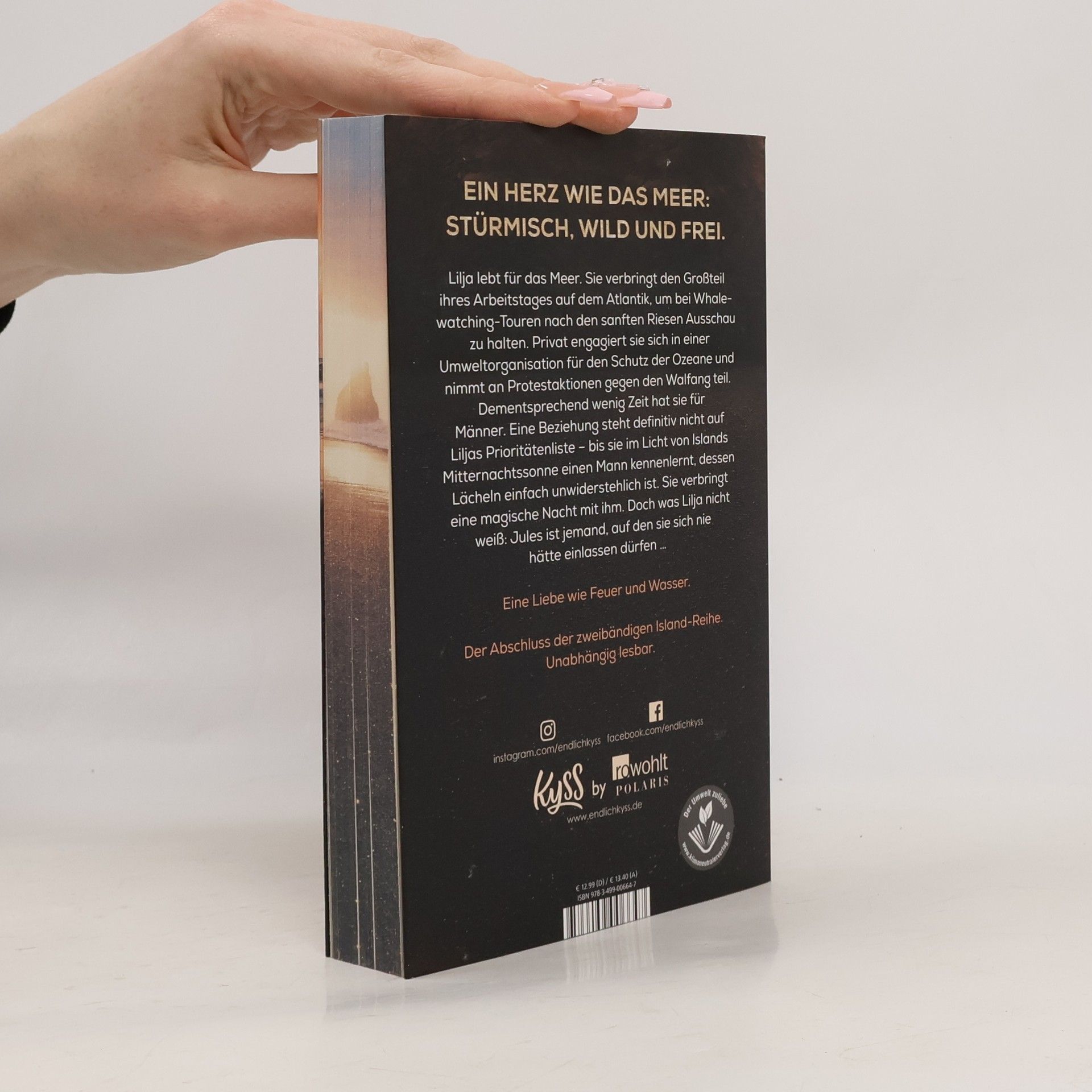 Ein Herz wie das Meer: stürmisch, wild und frei. Lilja lebt für das Meer. Sie verbringt den Großteil ihres Arbeitstages auf dem Atlantik, um bei Whalewatching-Touren nach den sanften Riesen Ausschau zu halten. Privat engagiert sie sich in einer Umweltorganisation für den Schutz der Ozeane und nimmt an Protestaktionen gegen den Walfang teil. Dementsprechend wenig Zeit hat sie für Männer. Eine Beziehung steht definitiv nicht auf Liljas Prioritätenliste – bis sie im Licht von Islands Mitternachtssonne einen Mann kennenlernt, dessen Lächeln einfach unwiderstehlich ist. Sie verbringt eine magische Nacht mit ihm. Doch was Lilja nicht weiß: Jules ist jemand, auf den sie sich nie hätte einlassen dürfen … Mitternachtssonne und Vulkanstrände. Band 2 der Island-Reihe, das Sommerbuch. Unabhängig lesbar.