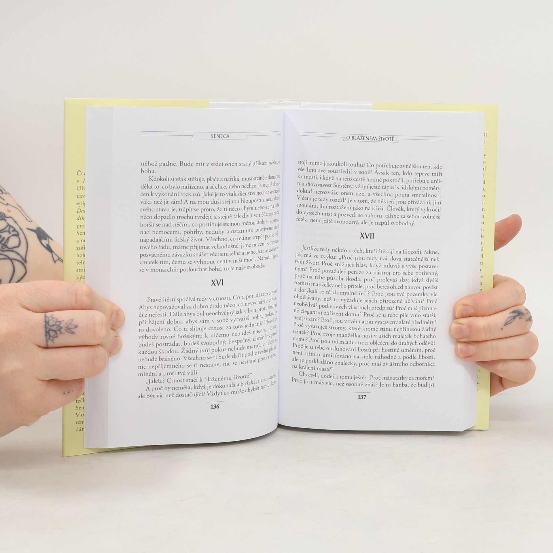 Čtvrtý svazek Senecových filozofických textů dovršuje edici jeho prozaického díla v českých překladech vydaných v Antické knihovně (AK 4; AK 51;). Dominantou tohoto závěrečného svazku je proslulá konsolace čili útěcha O duševním klidu. Její téma v dílčích pohledech doplňuje sedmero dalších úvah. Kuriózním dodatkem je často samostatně vydávaná satira Apokolokyntóza, zesměšňující zbožštění císaře Claudia. Pikantní tečkou je soubor 73 epigramů, v nichž vyniká Senekův břitký ostrovtip a pozorovací schopnost. Seneca vždy patřil a stále patří k nejznámějším a nejoblíbenějším římským autorům. Jeho filozofické spisy, úvahy a konsolace čili útěchy byly hojně čteny pro naléhavý etický obsah a srozumitelnost. Hledá cesty k mravní odpovědnosti cti, vnitřní svobodě a duševní vyrovnanosti, uvažuje o smrti a o přátelství a jeho prospěšnosti a potřebnosti, chválí odpoutání od materiálních potřeb, prosazuje myšlenku o rovnosti všech lidí apod. Je to filozofie praktického života a lze z ní vyčíst mnoho autorových vlastních zkušeností ze vzrušené doby, kterou prožíval. Obsahuje: Apokolokyntóza Epigramy O blaženém životě O duševním klidu O hněvu O krátkosti života O laskavosti O prozřetelnosti O stálosti mudrce O volném čase