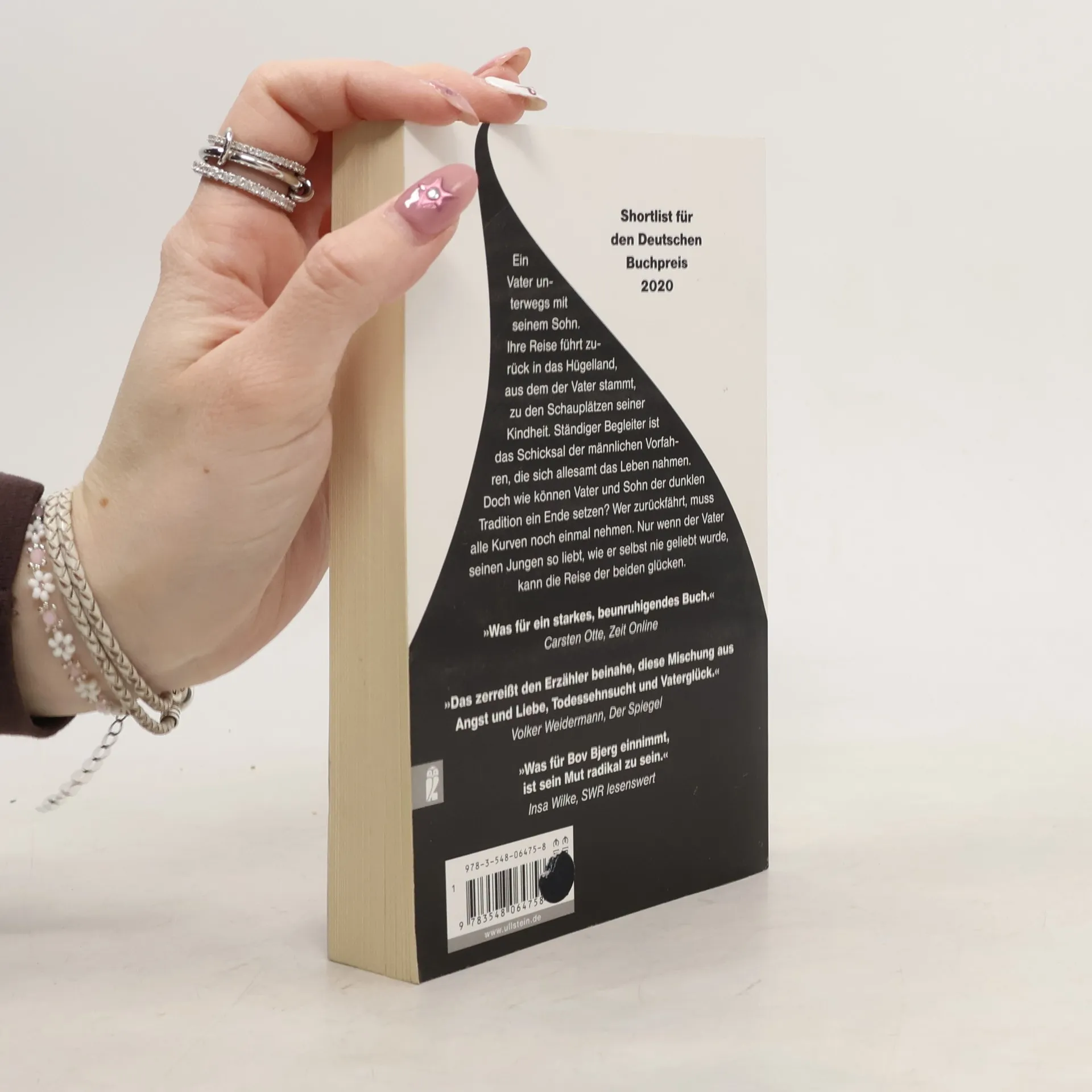 Ein Vater unterwegs mit seinem Sohn. Ihre Reise führt zurück in das Hügelland, aus dem der Vater stammt, zu den Schauplätzen seiner Kindheit. Da ist das Geburtshaus, dort die elterliche Hochzeitskirche, hier der Friedhof, auf dem der Freund Frieder begraben liegt. Ständiger Reisebegleiter ist das Schicksal der männlichen Vorfahren, die sich allesamt das Leben nahmen: „Urgroßvater, Großvater, Vater. Ertränkt, erschossen, erhängt.“ Der Vater muss erkennen, dass sein Wegzug, seine Bildung und sein Aufstieg keine Erlösung gebracht haben. Vielleicht helfen die Rückkehr und das Erinnern. Doch warum bringt er seinen Jungen in Gefahr? Warum hat er keine Antwort auf dessen bange Frage: „Um was geht es?“ Er weiß nur: Wer zurückfährt, muss alle Kurven noch einmal nehmen. Wenn er der dunklen Tradition ein Ende setzen will. Bov Bjerg gehört zu den wichtigsten Schriftstellern der deutschen Gegenwart. Nach dem Bestseller „Auerhaus“ legt er nun seinen neuen Roman vor. Genau, mutig und lang nachwirkend erzählt er vom Kampf eines Vaters gegen die Dämonen der Vergangenheit. Nur wenn er seinen Sohn so liebt, wie er selbst nie geliebt wurde, kann die Reise der beiden glücken.