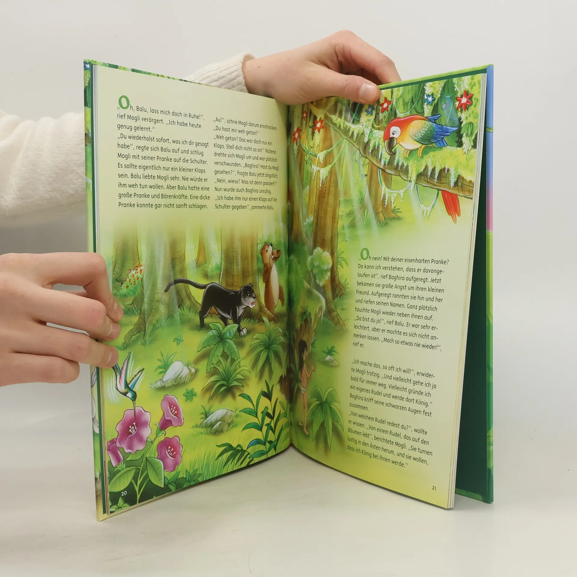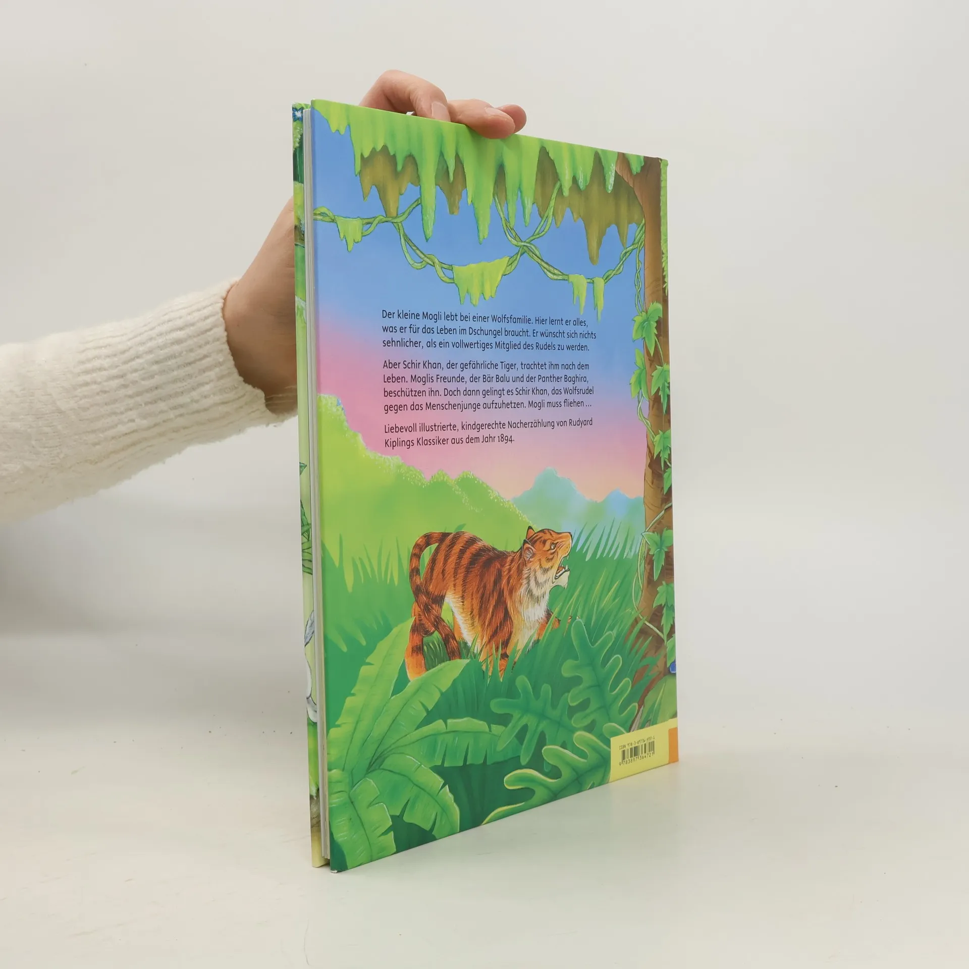 Nach der Vorlage von Rudyard Kiplings Klassiker aus dem Jahr 1894 wird die Geschichte des Menschenjungen Mogli und seine Abenteuer im Dschungel mit Balu, dem Bär, und dem Panther Baghira kindgerecht nacherzählt. Das Buch eignet sich ideal zum Vorlesen und ist mit vielen wunderschönen und farbenfrohen Bilder auf jeder Seite illustriert.