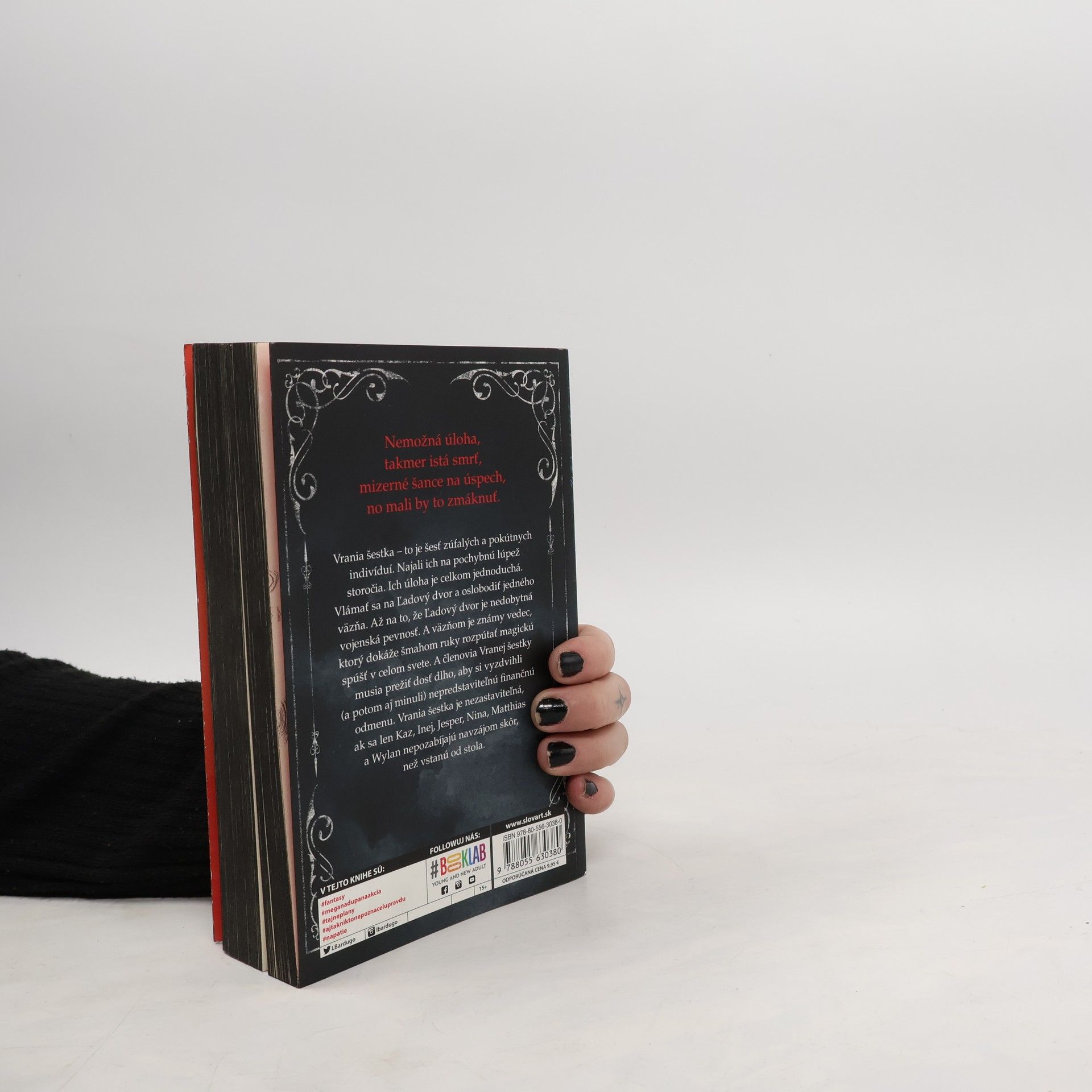 Šesť nebezpečných vyvrheľov. Jedna neuskutočniteľná úloha. Vrania šestka – to je šesť zúfalých a pokútnych indivíduí: trestanec (čo prahne po pomste), ostrostrelec (ktorý neodolá žiadnej stávke), zbeh (čo zutekal pred životom v luxuse jednej z najbohatších rodín), špiónka (známa ako Prízrak), lámačka (čo sa pretĺka spodinou sveta pomocou mágie) a zlodej (s darom vyviaznuť živý zovšadiaľ). Najali ich na pochybnú lúpež storočia. Ich úloha je celkom jednoduchá. Vlámať sa na Ľadový dvor a oslobodiť jedného väzňa. Až na to, že Ľadový dvor je nedobytná vojenská pevnosť, ktorú zatiaľ nikto, ale naozaj nikto nezdolal. Väzňom je známy vedec, ktorý dokáže šmahom ruky rozpútať magickú spúšť v celom známom svete. A členovia Vranej šestky musia prežiť dosť dlho, aby si vyzdvihli (a potom aj minuli) svoju nepredstaviteľnú finančnú odmenu. Vrania šestka je nezastaviteľná, ak sa len Kaz, Inej, Jesper, Nina, Matthias a Wylan nepozabíjajú navzájom skôr, než vstanú od stola. http://www.uniknihy.sk/produkt/vrania-sestka/