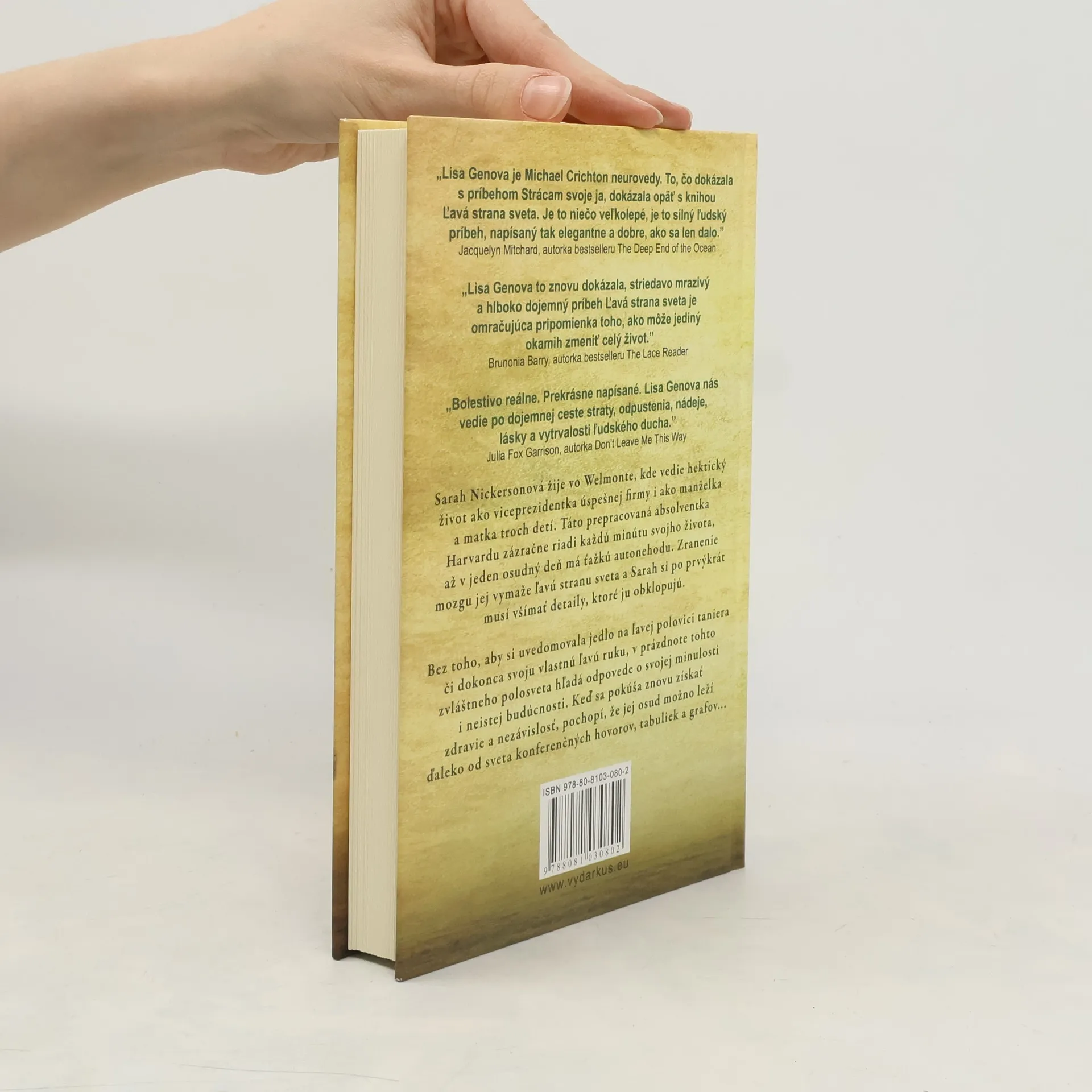 Román od autorky medzinárodného bestselleru Strácam svoje ja (Still Alice), ktorý bol sfilmovaný, pričom vo februári 2015 získala predstaviteľka hlavnej hrdinky za túto úlohu Oscara. Sarah Nickersonová žije vo Welmonte, kde vedie hektický život ako viceprezidentka úspešnej firmy i ako manželka a matka troch detí. Táto prepracovaná absolventka Harvardu zázračne riadi každú minútu svojho života, až v jeden osudný deň má cestou do práce ťažkú autonehodu. Zranenie mozgu jej úplne vymaže ľavú stranu sveta a Sarah si po prvýkrát musí všímať detaily, ktoré ju obklopujú, vrátane jej matky, ktorá doteraz v jej živote chýbala. Bez toho, aby si uvedomovala jedlo na ľavej polovici taniera či dokonca svoju vlastnú ľavú ruku, v prázdnote tohto zvláštneho polosveta hľadá odpovede o svojej minulosti i neistej budúcnosti. Keď sa pokúša znovu získať zdravie a nezávislosť, pochopí, že jej skutočný osud možno leží ďaleko od sveta konferenčných hovorov, tabuliek a grafov...