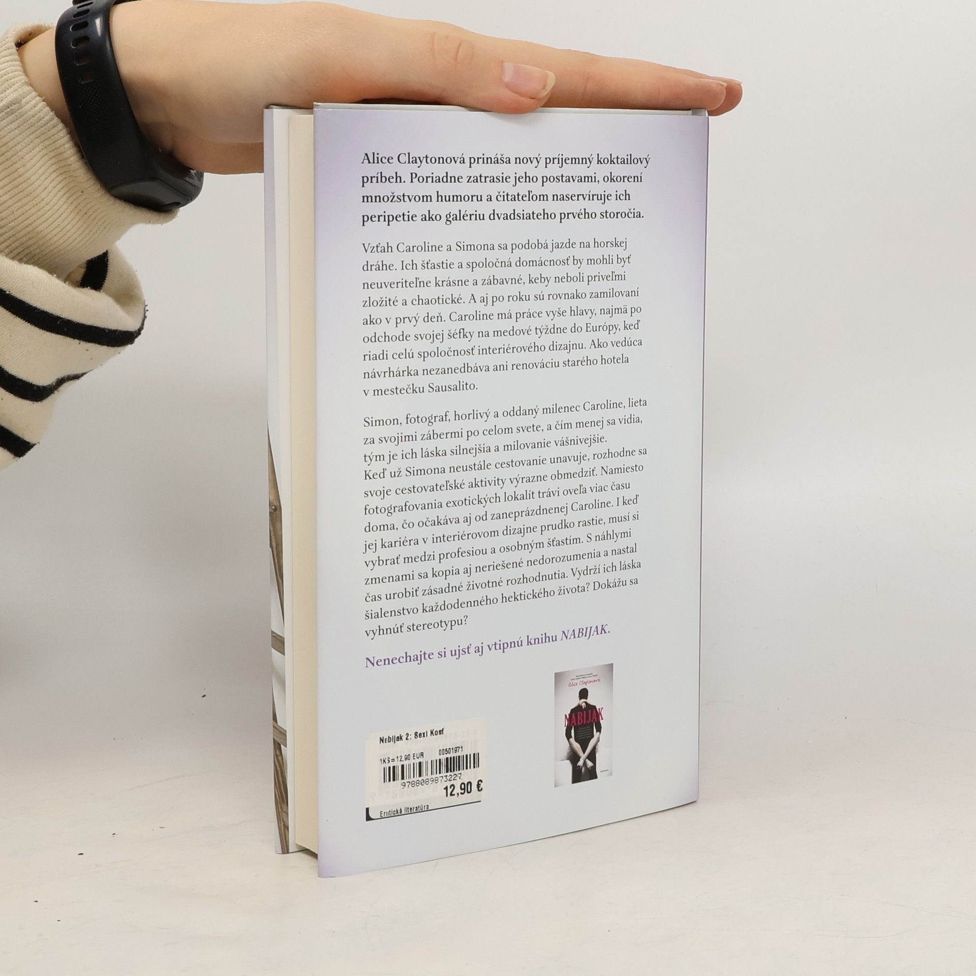 Alice Claytonová prináša nový príjemný koktailový príbeh. Poriadne zatrasie jeho postavami, okorení množstvom humoru a čitateľom naservíruje ich peripetie ako galériu dvadsiateho prvého storočia. Vzťah Caroline a Simona sa podobá jazde na horskej dráhe. Ich šťastie a spoločná domácnosť by mohli byť neuveriteľne krásne a zábavné, keby neboli priveľmi zložité a chaotické. A aj po roku sú rovnako zamilovaní ako v prvý deň. Caroline má práce vyše hlavy, najmä po odchode svojej šéfky na medové týždne do Európy, keď riadi celú spoločnosť interiérového dizajnu. Ako vedúca návrhárka nezanedbáva ani renováciu starého hotela v mestečku Sausalito. Simon, fotograf, horlivý a oddaný milenec Caroline, lieta za svojimi zábermi po celom svete, a čím menej sa vidia, tým je ich láska silnejšia a milovanie vášnivejšie. Keď už Simona neustále cestovanie unavuje, rozhodne sa svoje cestovateľské aktivity výrazne obmedziť. Namiesto fotografovania exotických lokalít trávi oveľa viac času doma, čo očakáva aj od zaneprázdnenej Caroline. I keď jej kariéra v interiérovom dizajne prudko rastie, musí si vybrať medzi profesiou a osobným šťastím. S náhlymi zmenami sa kopia aj neriešené nedorozumenia a nastal čas urobiť zásadné životné rozhodnutia. Vydrží ich láska šialenstvo každodenného hektického života? Dokážu sa vyhnúť stereotypu?