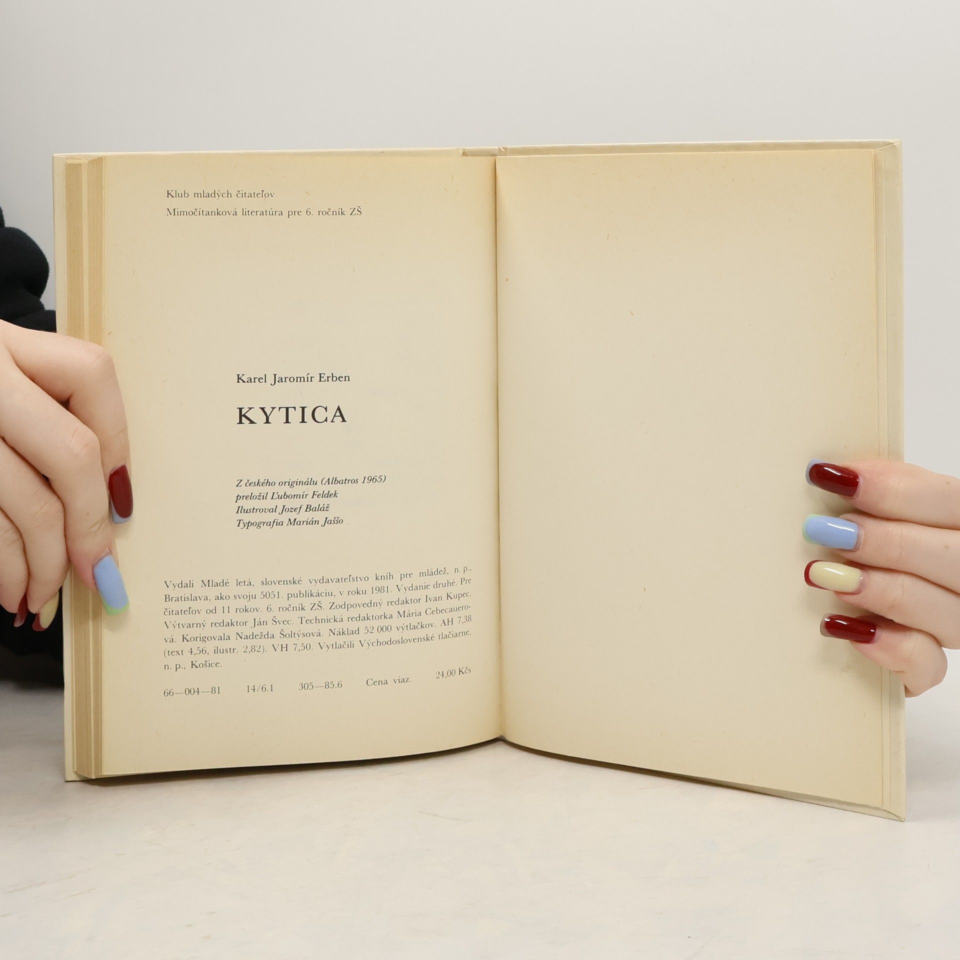 Zbierka básní a balád sa stala slávnou už za autorovho života a dodnes patrí k najčítanejším knihám českej literatúry (Kytica, Poklad, Svadobná košeľa, Poludnica, Holúbok, Vodník, atd.)... Druhé vydanie. 66-004-81
