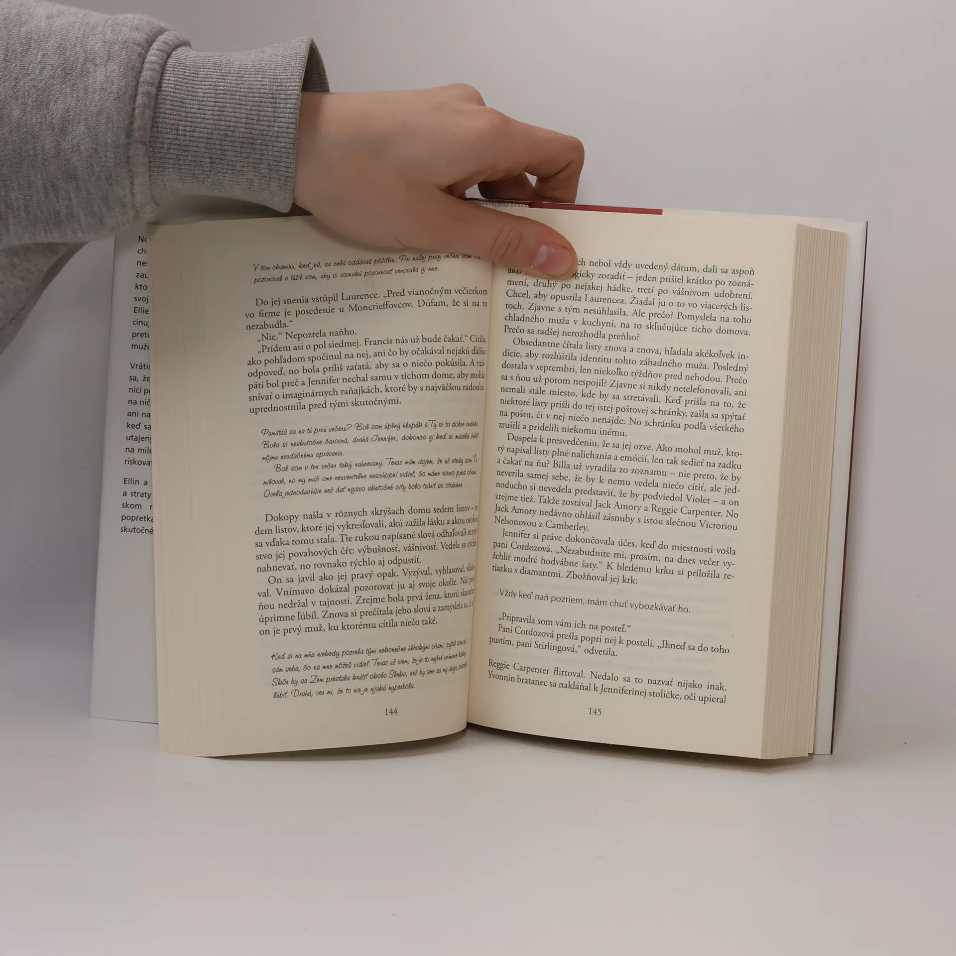 Novinárka Ellie hľadá v novinovom archíve zaujímavý príbeh, no ani celkom neverí, že by skutočne mohla nájsť niečo zaujímavé. Nájde však list z roku 1960, ktorý napísal neznámy muž a žiada v ňom svoju partnerku, aby opustila manžela. Ellie ten ľúbostný príbeh z minulosti fascinuje. Napriek tomu, alebo možno práve preto, lebo sama má pomer so ženatým mužom. Vrátime sa teda do roku 1960 a dozvieme sa, že Jennifer Stirlingová leží v nemocnici po vážnej autonehode. Nespomína si na nič – ani na manžela, ani na priateľky, ani na to, aká bola kedysi ona sama. Ale keď sa vráti z nemocnice domov, nájde utajený list a pomaly si začína spomínať na milenca, kvôli ktorému bola ochotná riskovať úplne všetko. Ellin a Jenniferin príbeh vášne, nevery a straty sa v silne emotívnom spoločenskom románe navzájom prepletajú, popretkávané „poslednými listami“ zo skutočného života.