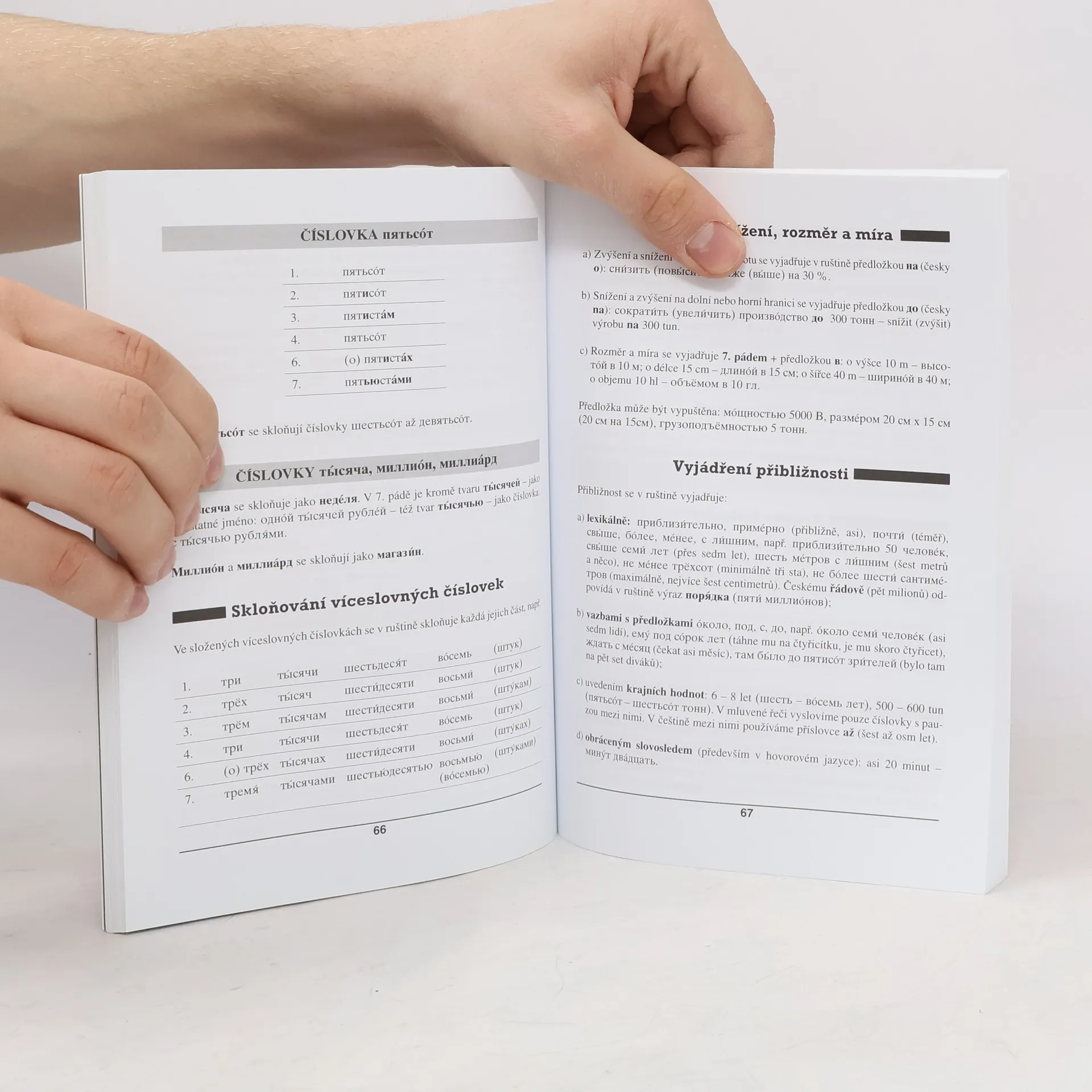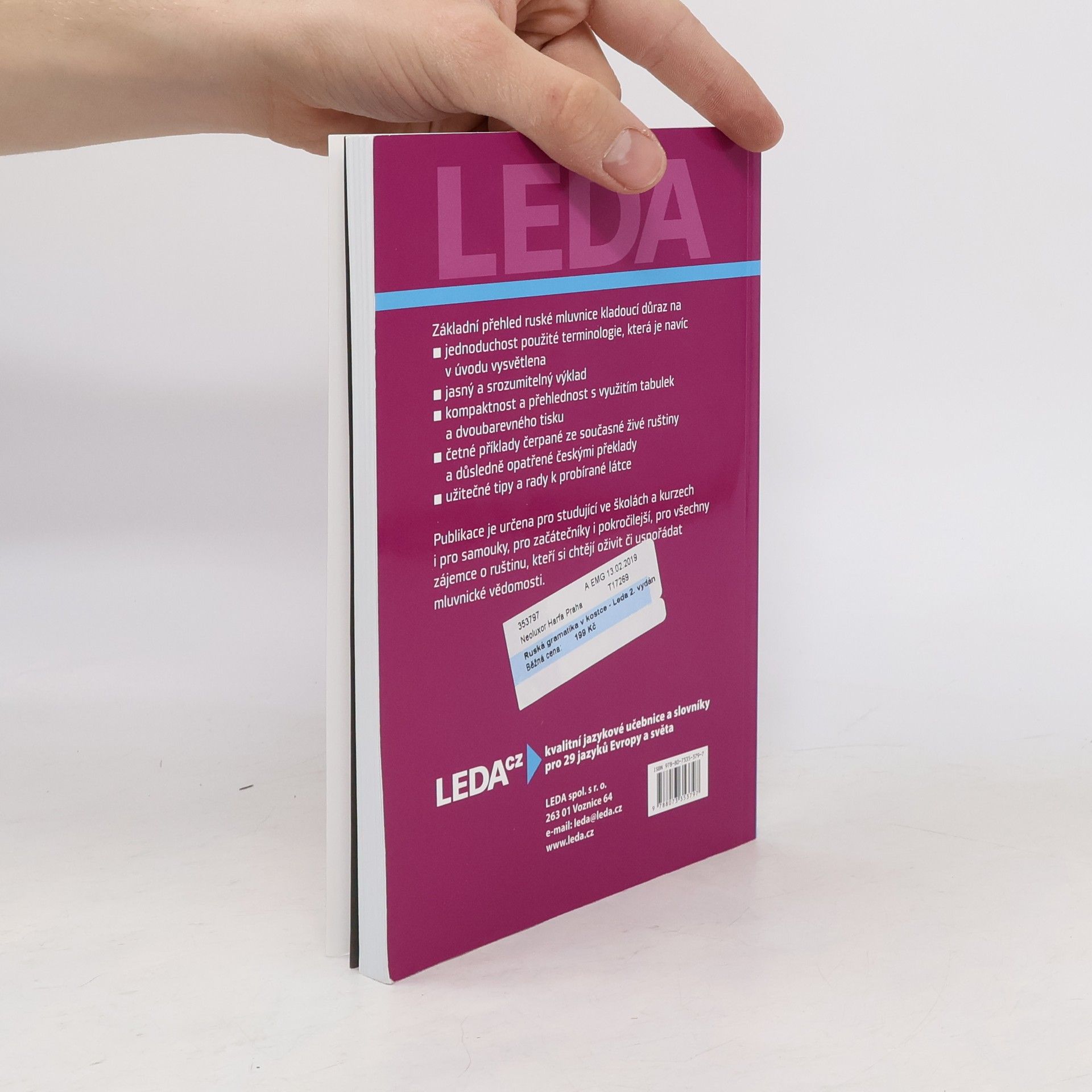 Tato jazyková příručka je určena každému, kdo si chce doplnit nebo získat základní znalosti o jazykovém systému současné ruštiny. Stručná příručka obsahuje systematický přehled pravidel ruské výslovnosti a pravopisu, ruského tvarosloví a vybrané kapitoly z ruské skladby. Při zpracování byl kladen důraz na ty mluvnické jevy, které jsou typické pro současný odborný jazyk, zvláště pro jazyk ekonomů. Uživatel se v látce snadno zorientuje pomocí přehledných tabulek. Ve výkladu se využívá tradičního srovnání s češtinou. Gramatická příručka je svým praktickým zaměřením vhodná pro studující ve školách a kursech, pro odborníky různých, především manažerských, ekonomických a obchodních profesí a pro všechny zájemce o současnou ruštinu, i v rámci individuálního studia.